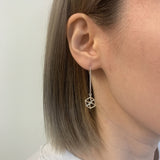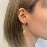 Silver Dangling Earrings, Cube Drop Earrings, Drop Square Earrings worn by model