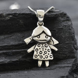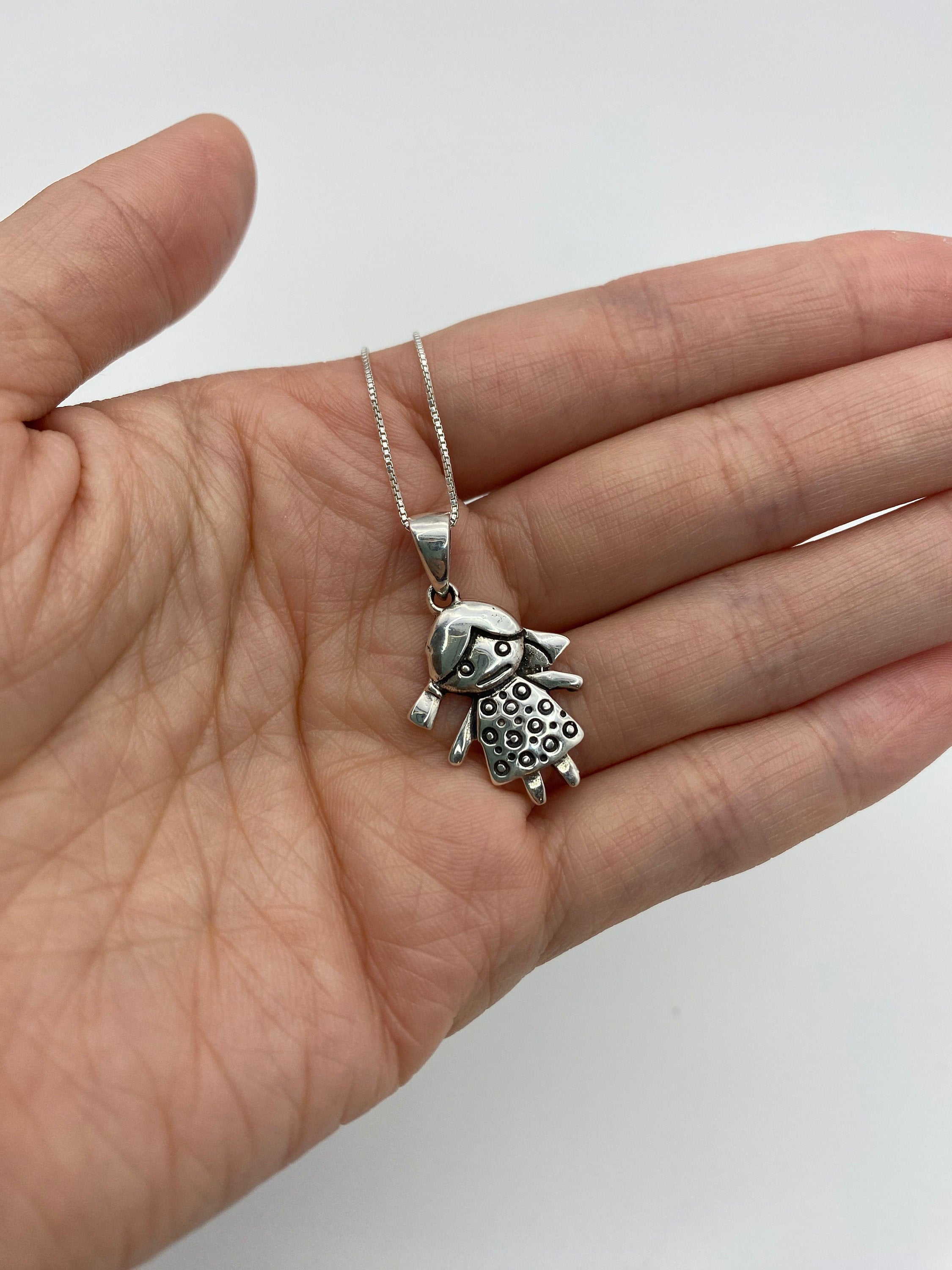 Silver Doll Pendant - Little Girl Necklace, Girl Doll Necklace