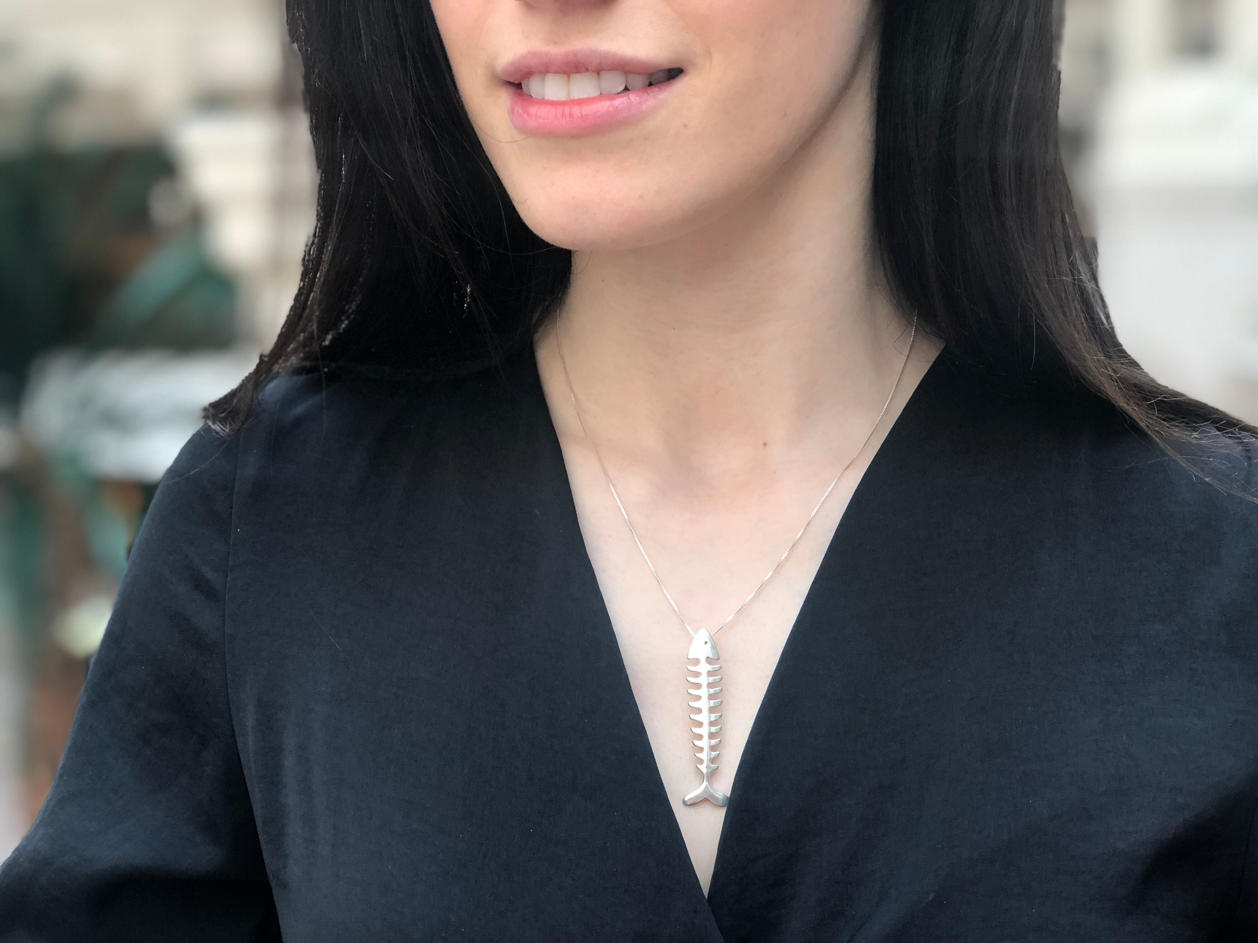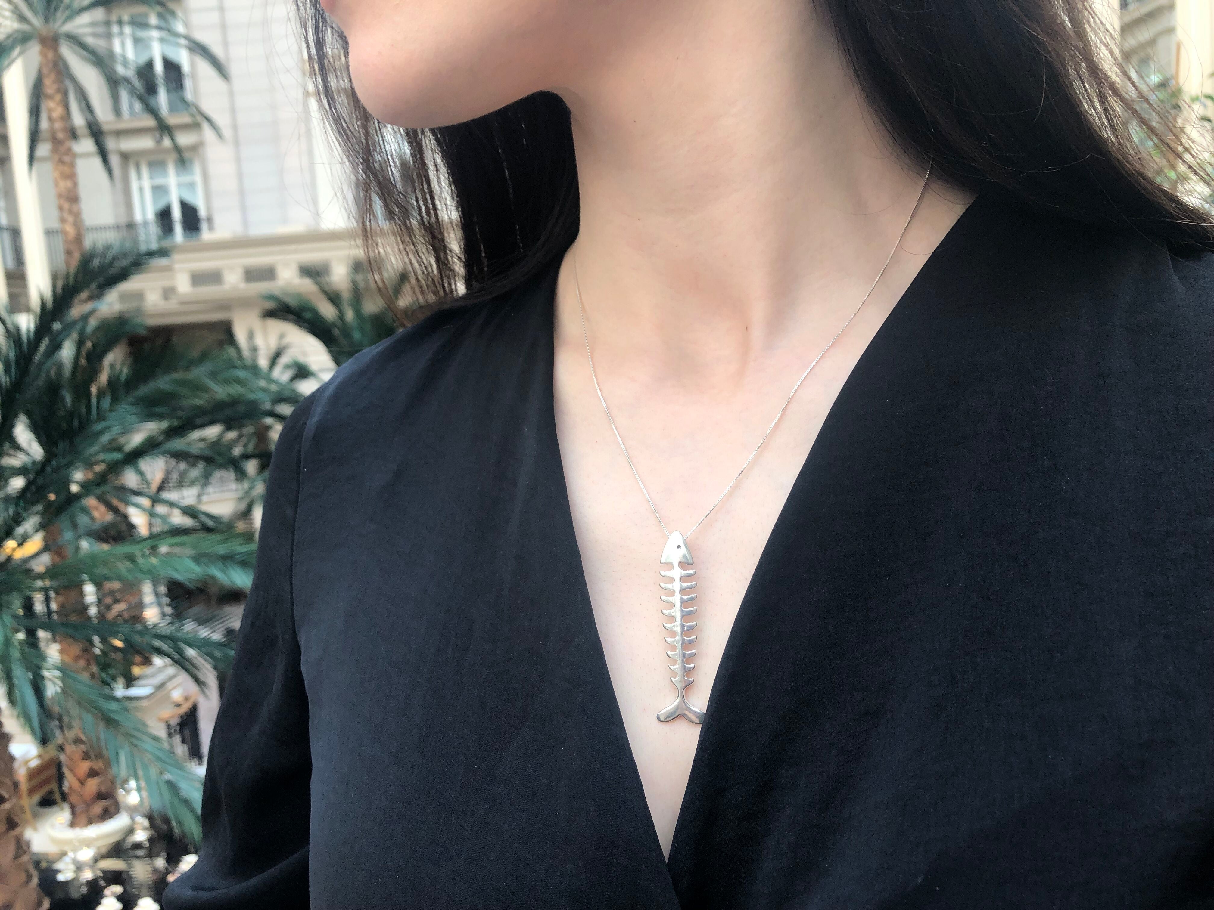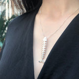 Silver Fish Pendant - Fish Bone Necklace - Large Fish Necklace