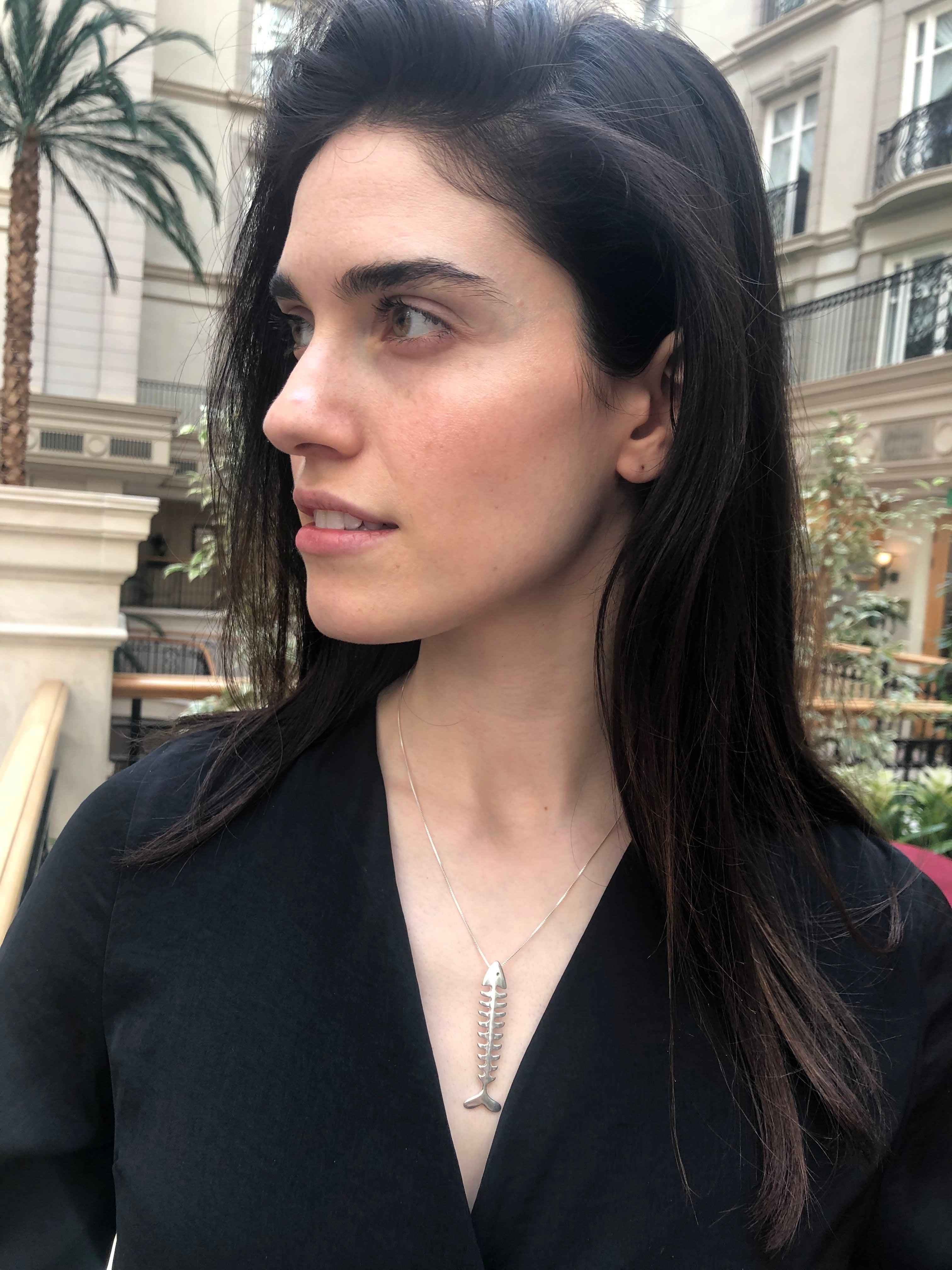 Silver Fish Pendant, Long Silver Pendant, Fish Bone, Large Silver Pendant, Animal Pendant, Solid Silver Pendant, Silver Artisan Pendant