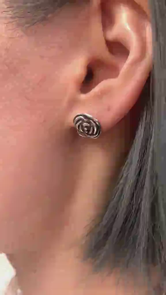 Silver Flower Studs - Silver Rose Studs - Silver Flower Earrings