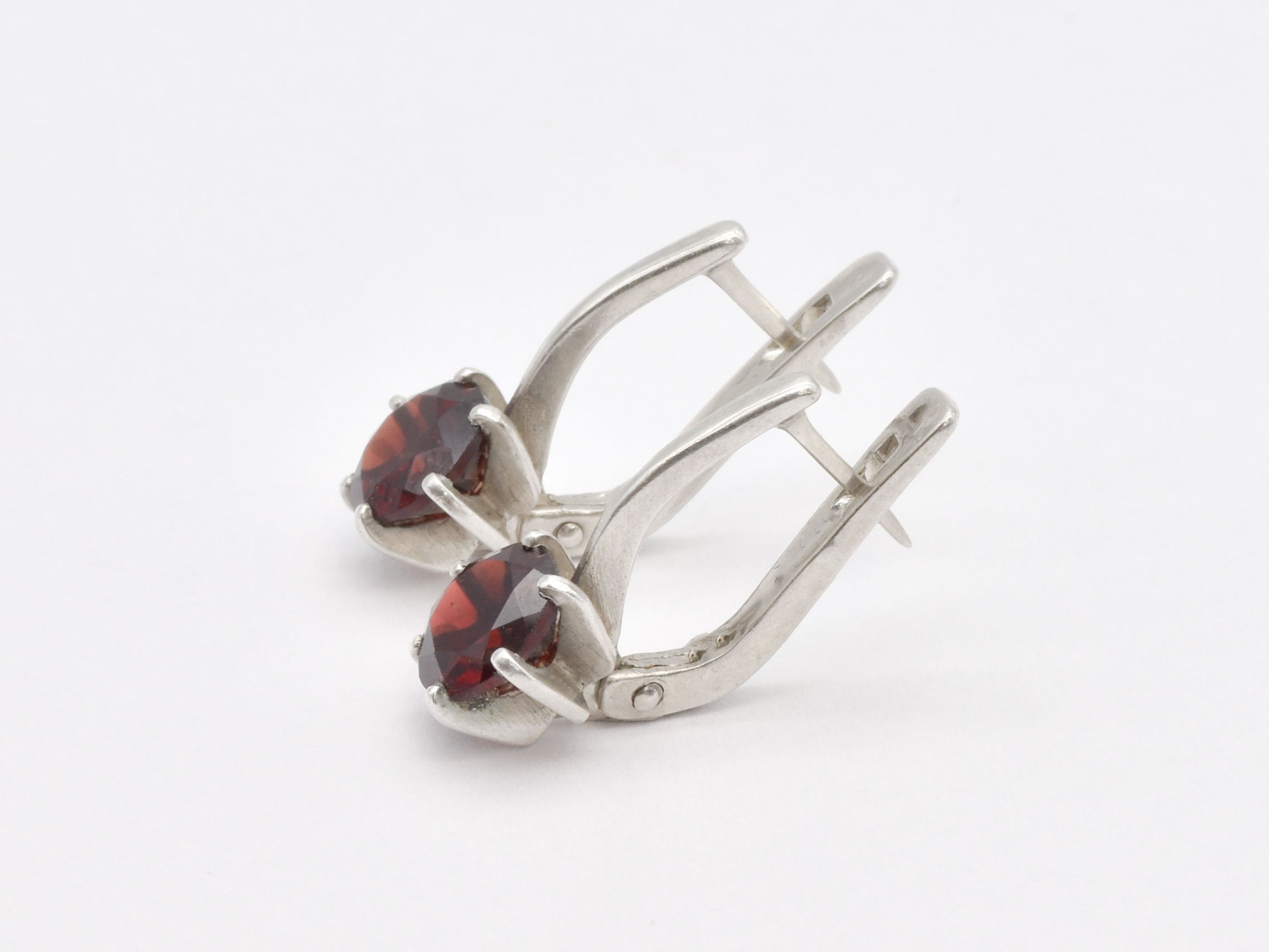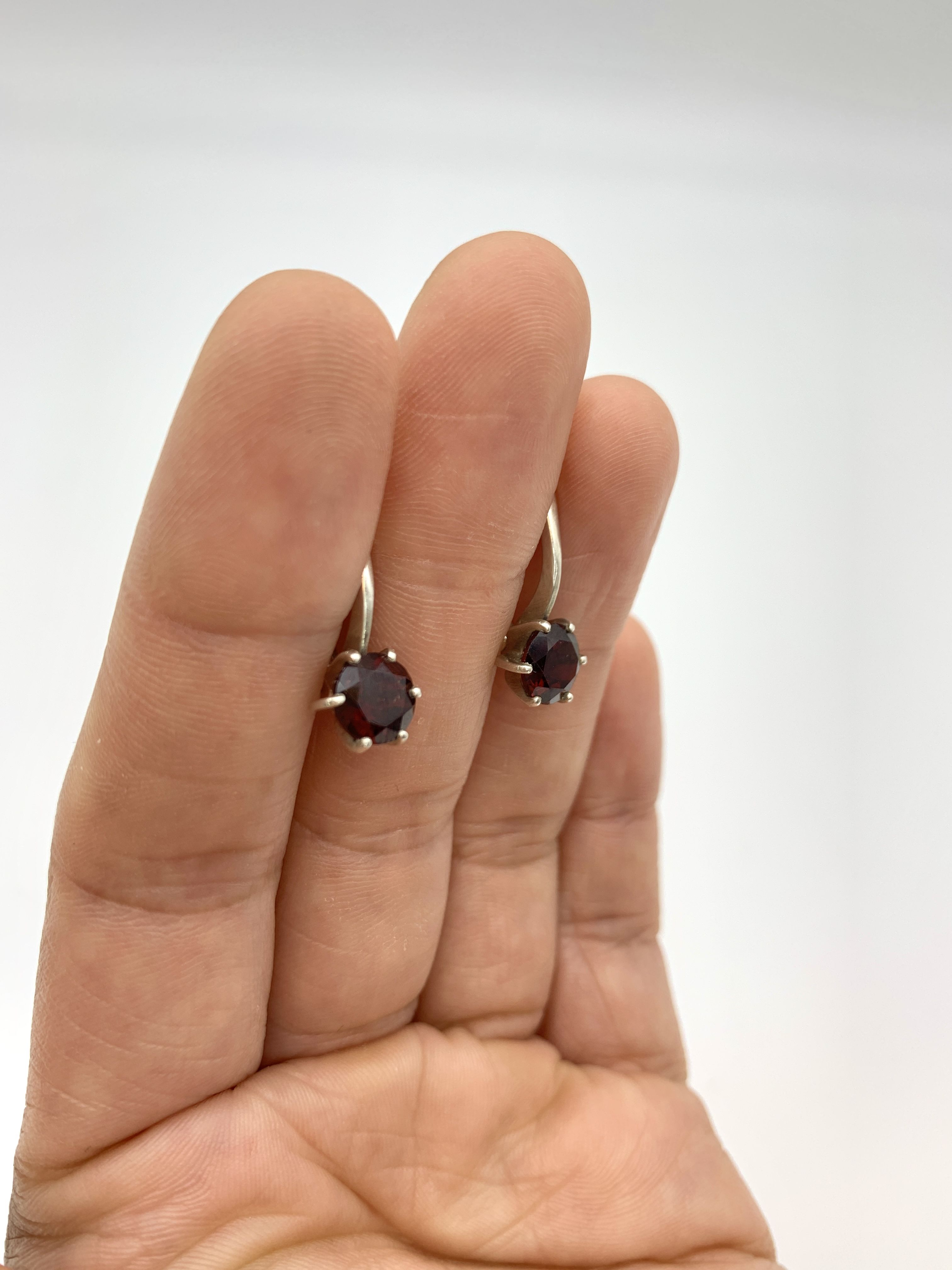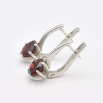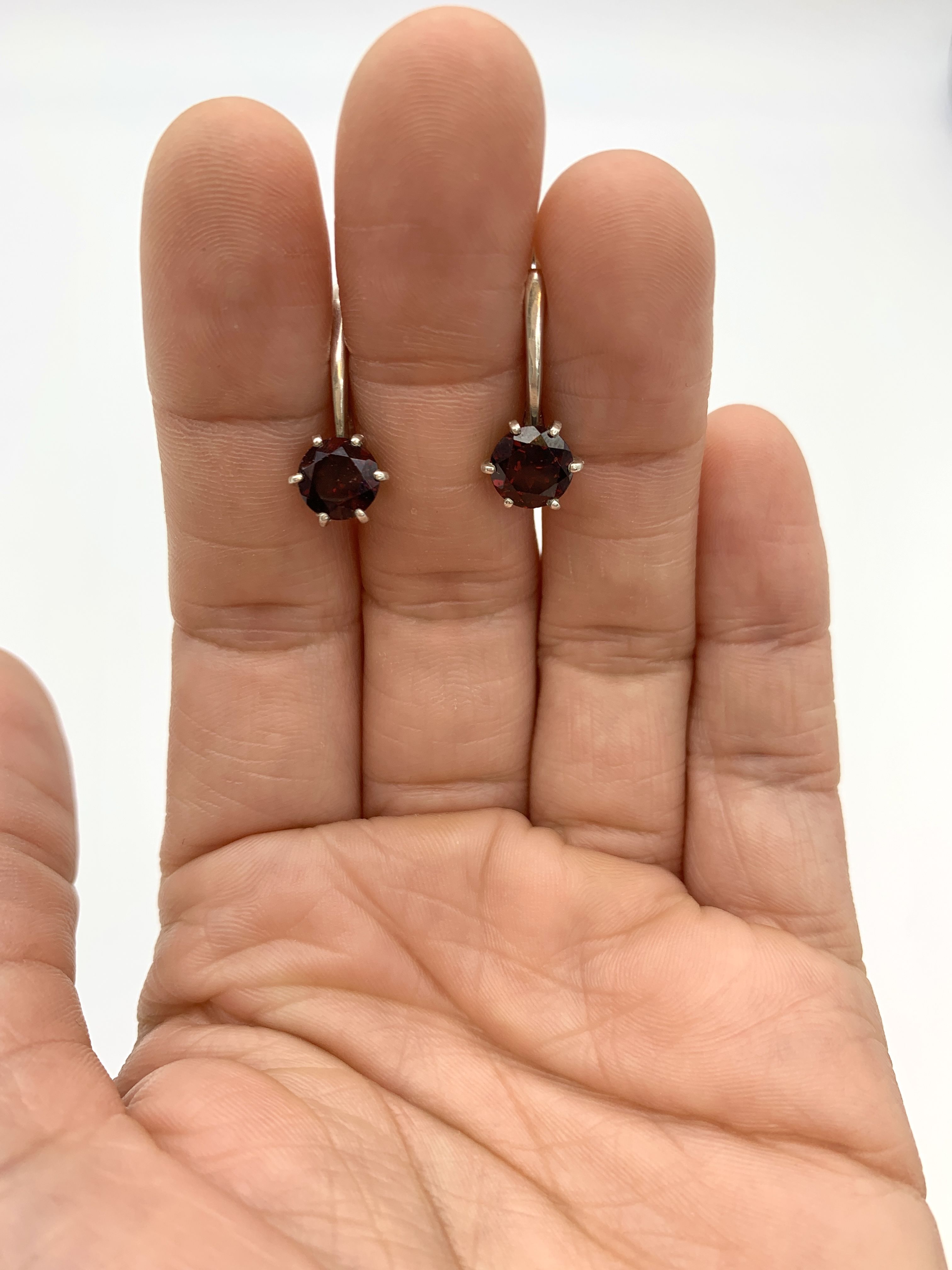 Silver Garnet Earrings set with Natural Garnet in a top grade, diamond cut & natural red color, at 7mm each (2 Cts a pair) from Mozambique.