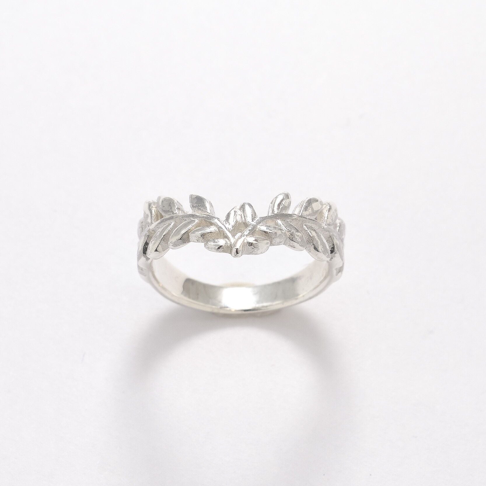 Silver Olives Ring - Chevron Leaf Band, Silver Leaves Ring