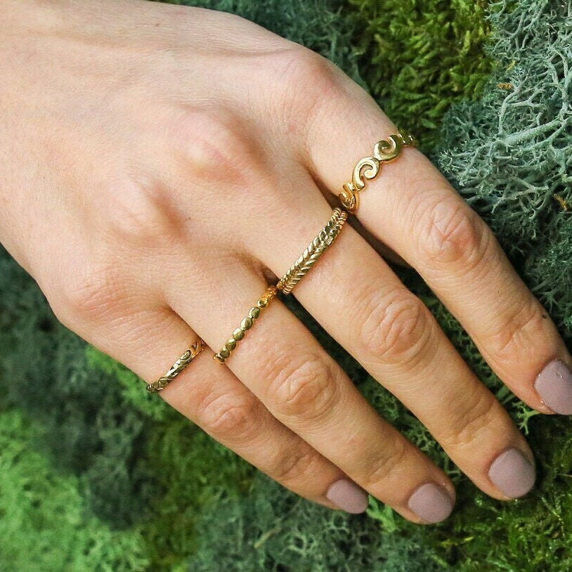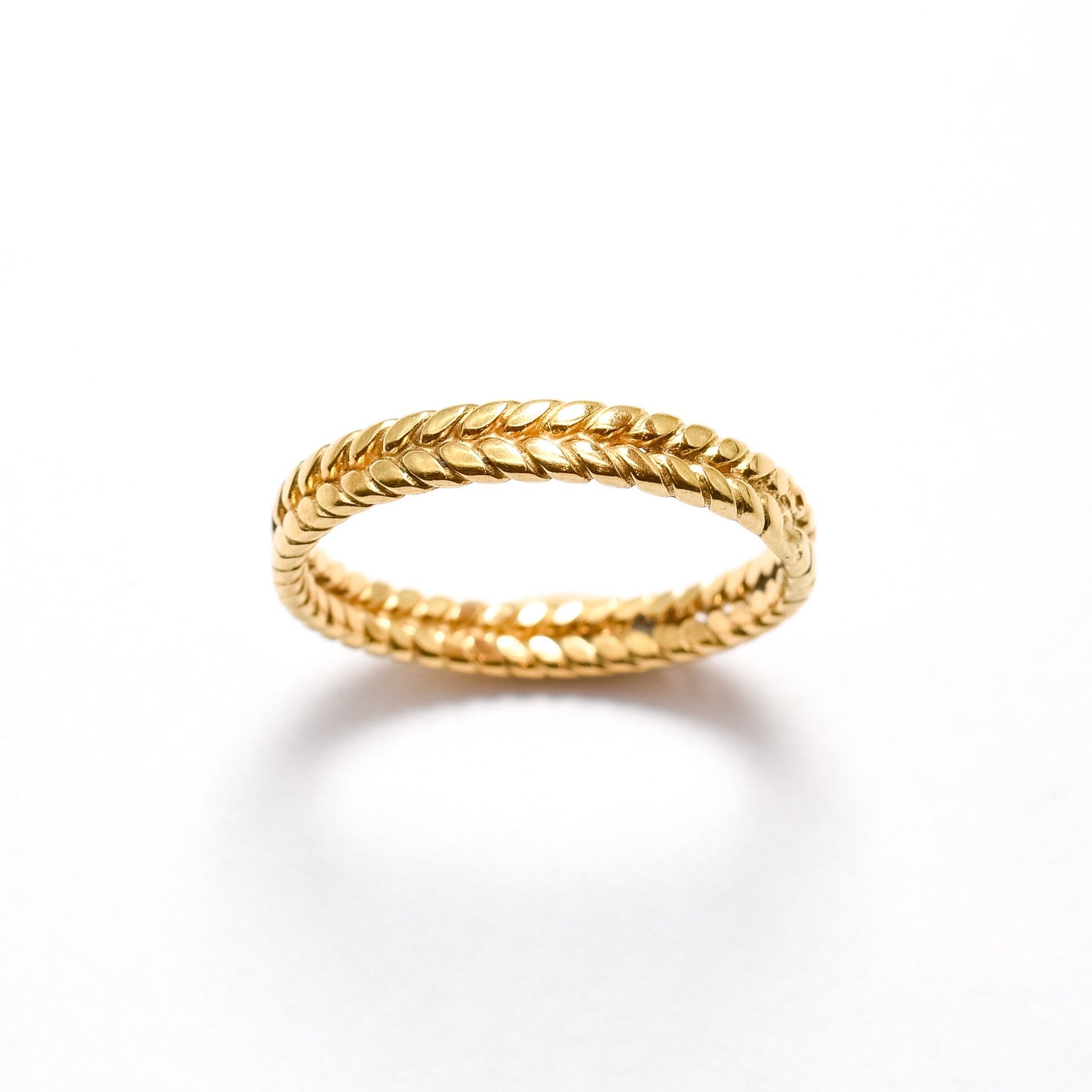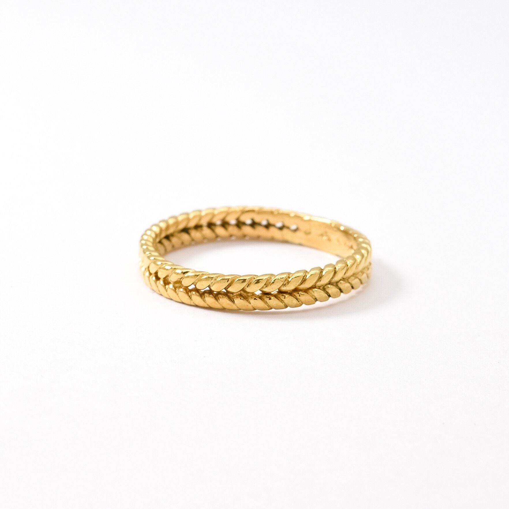 Small Braid Ring- Fishtail Gold Ring, Stackable Gold Ring
