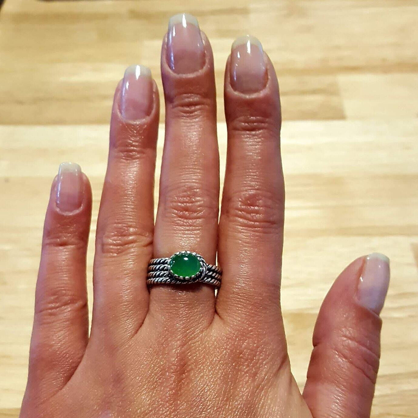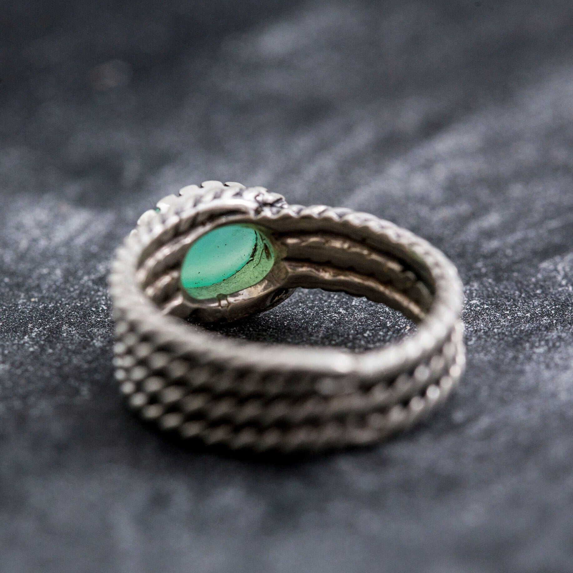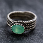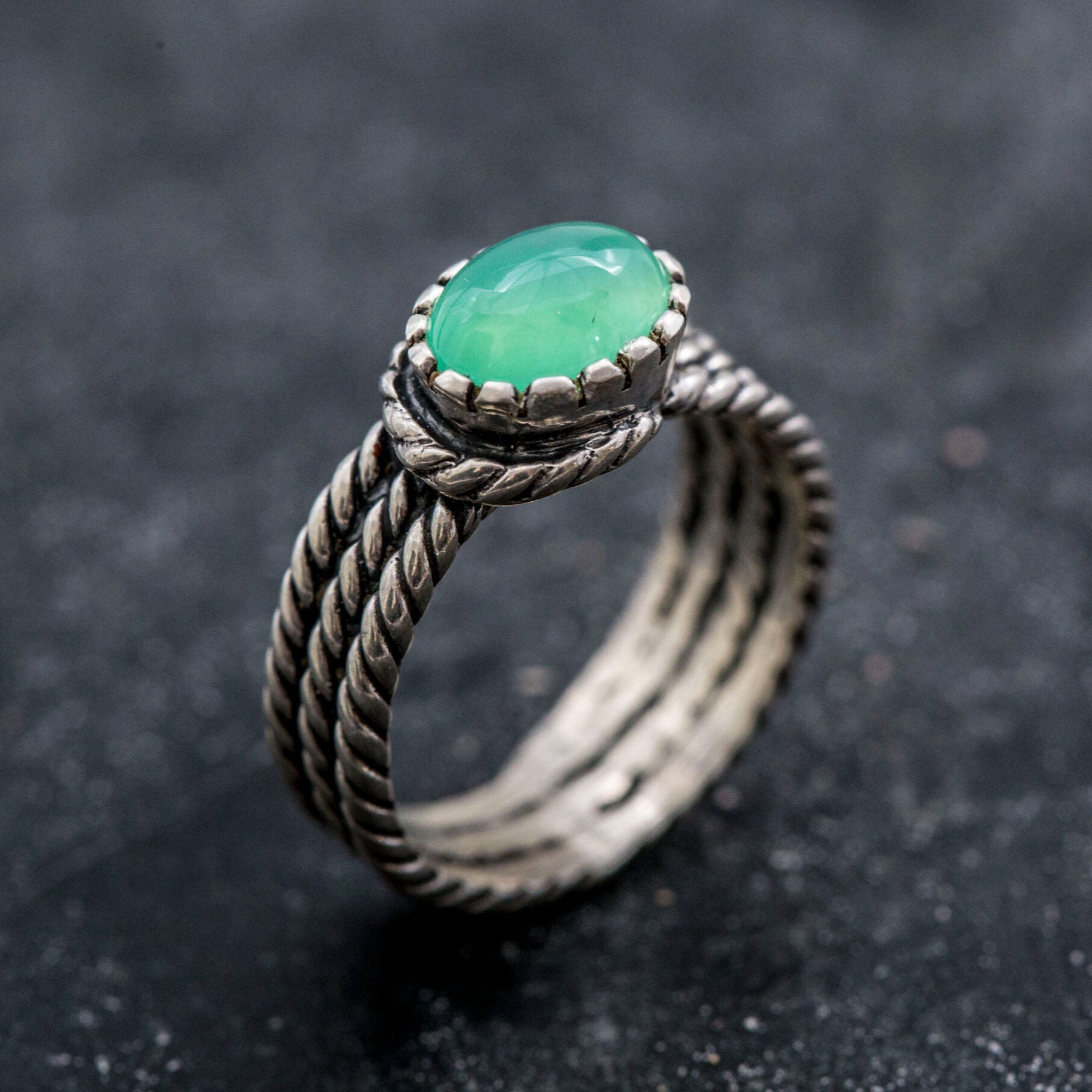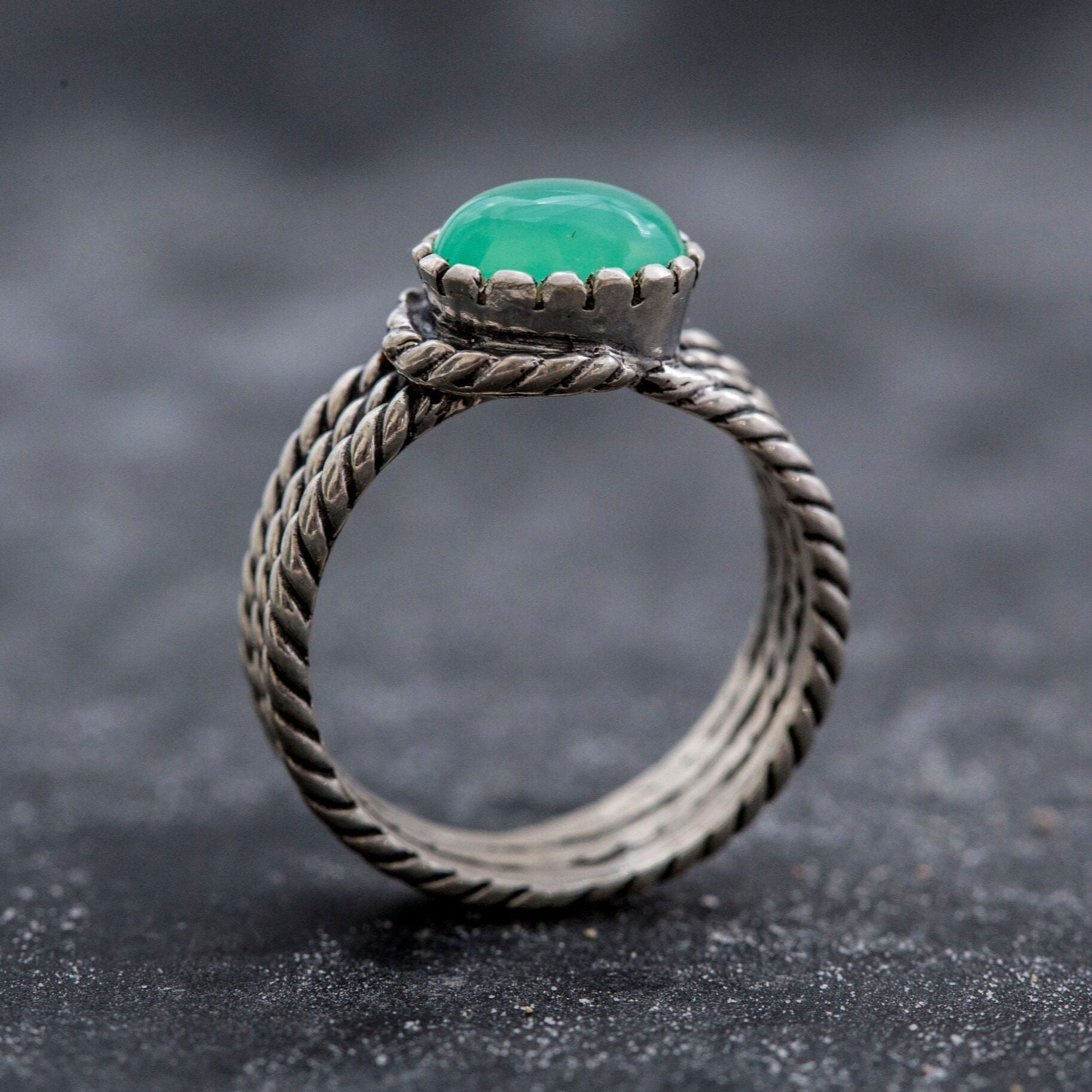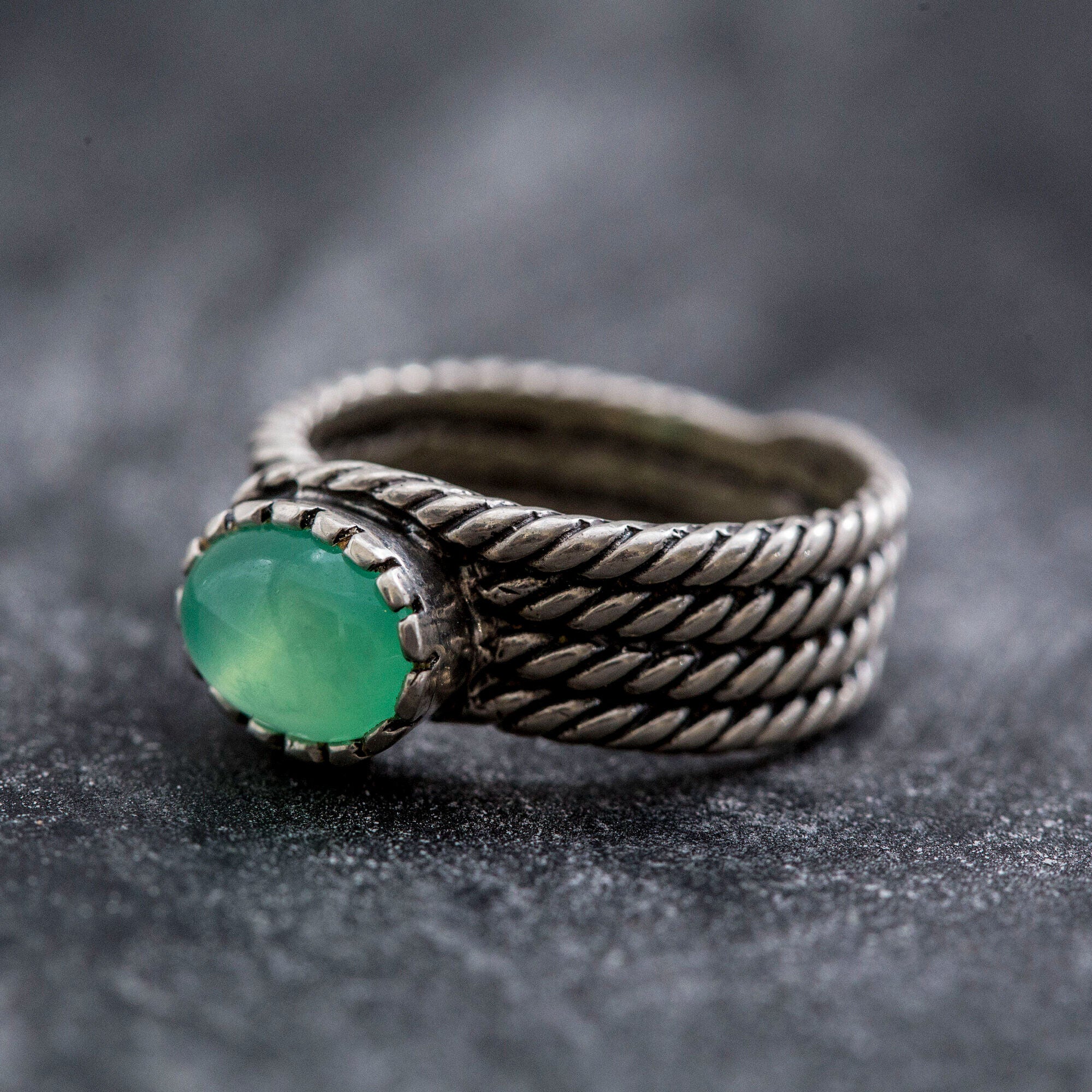 Silver Rope Ring, Chrysoprase Ring, Natural Chrysoprase, May Birthstone, Thick Silver Ring, Vintage Rings, Solid Silver Ring, Chrysoprase