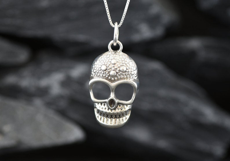 Silver Skull Pendant, Vintage Skull Necklace, Statement Skull Pendant, Solid Silver Pendant, Artistic Silver Pendant, 925 Sterling Silver