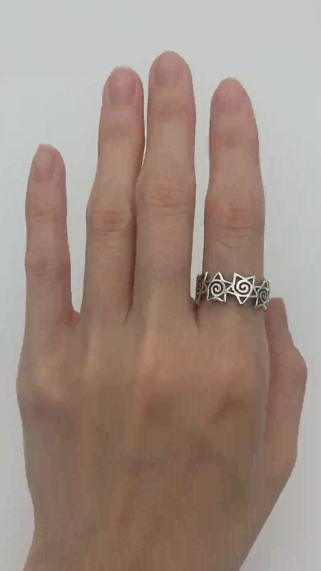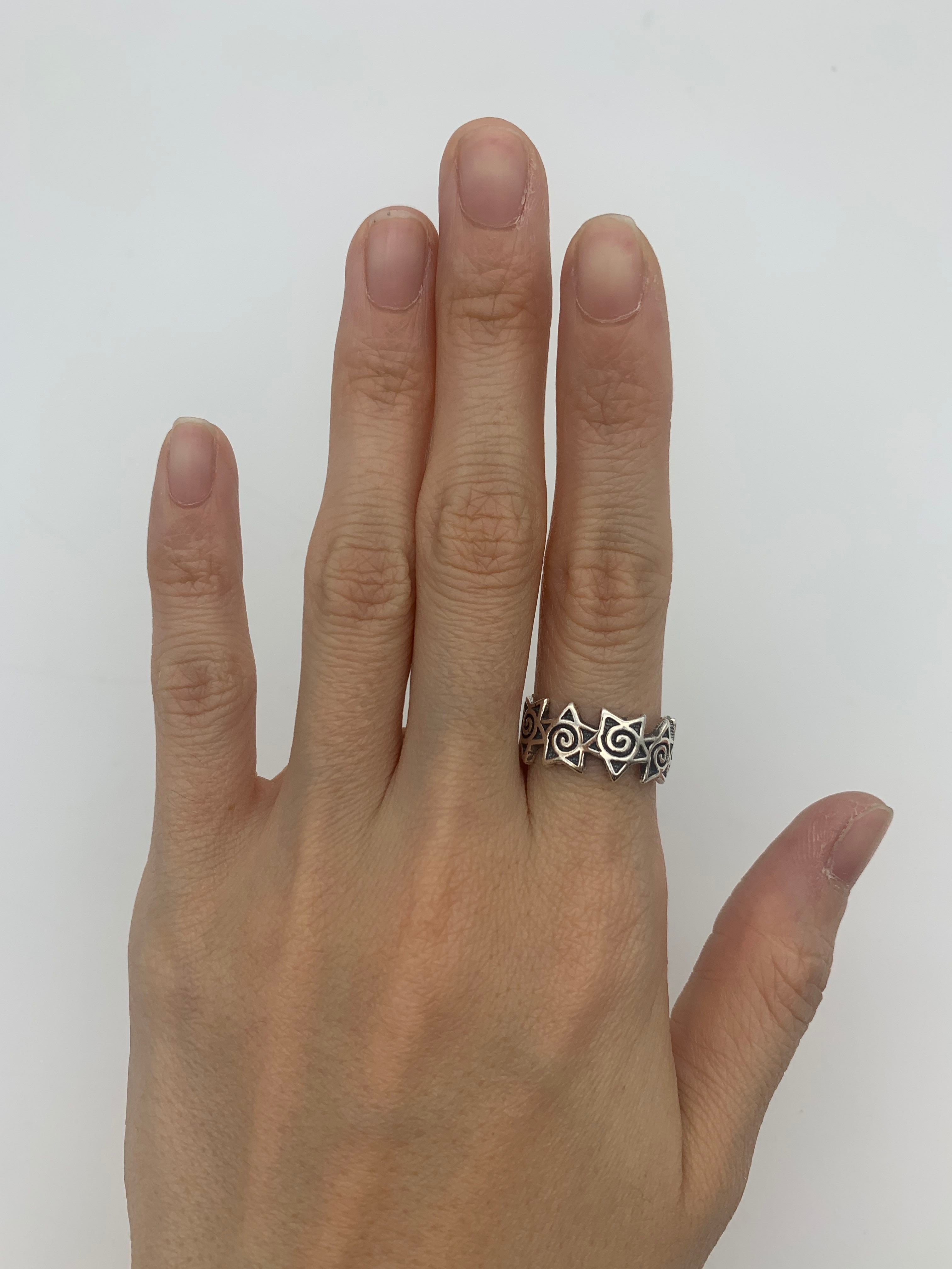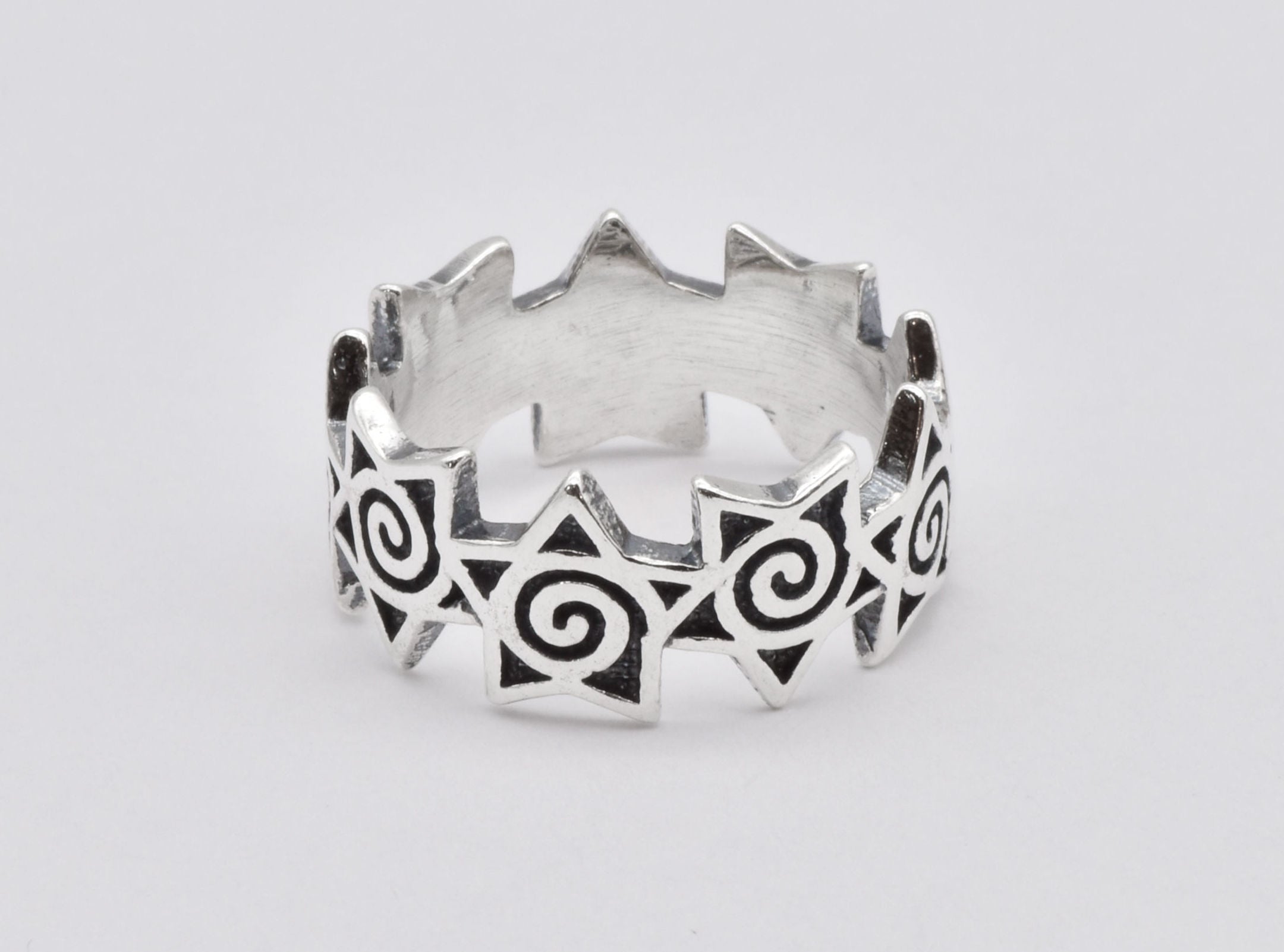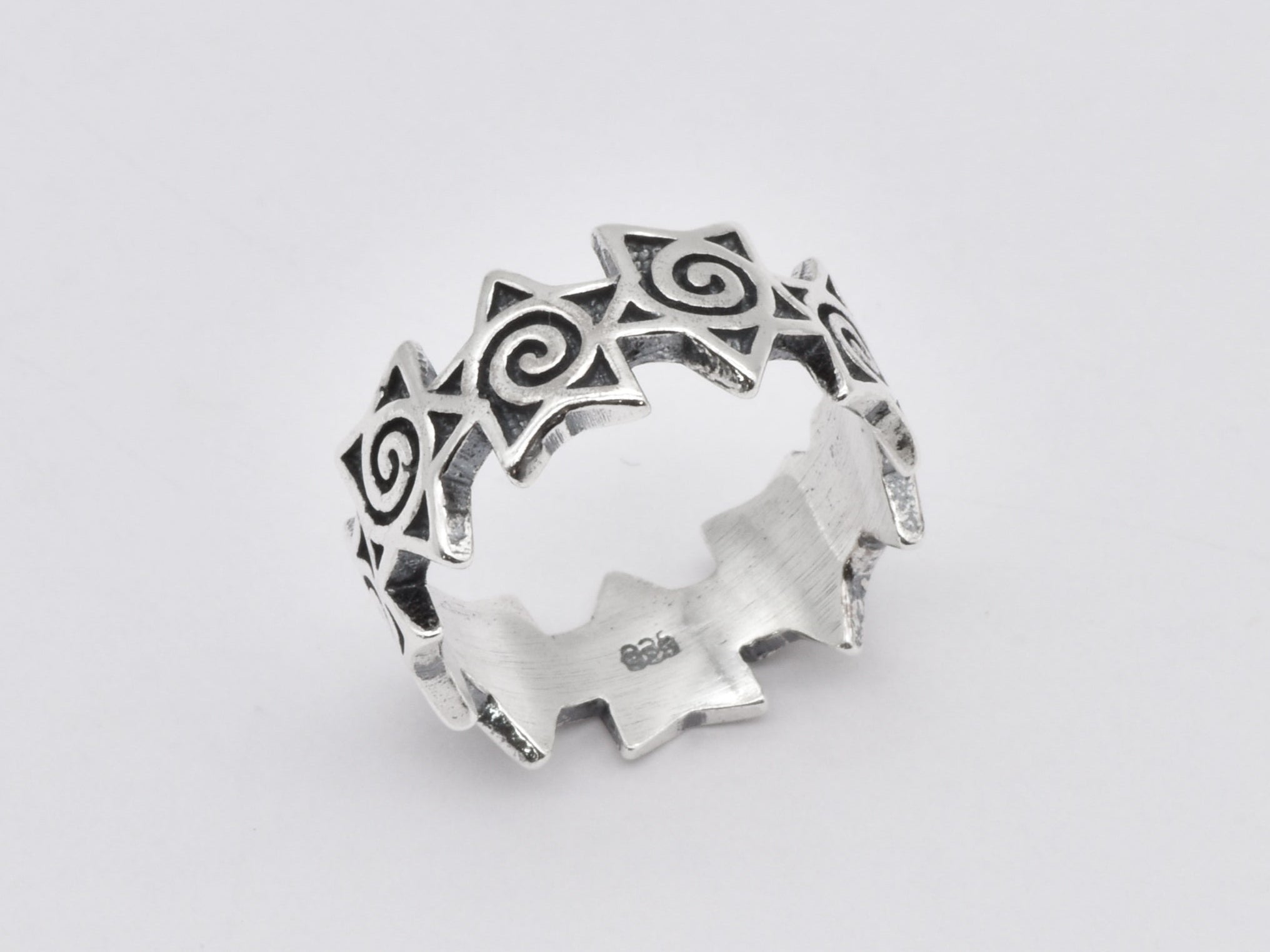 Silver Stars Ring - Eternity Stars Band, Star Swirl Ring