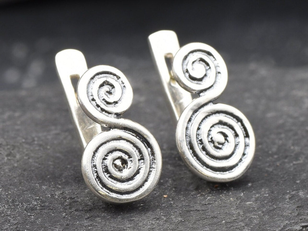Silver Swirl Earrings, Spiral Earrings, Tribal Earrings, Boho Earrings, Round Silver Earrings, Vintage Earrings, Silver Earrings, 925 Silver