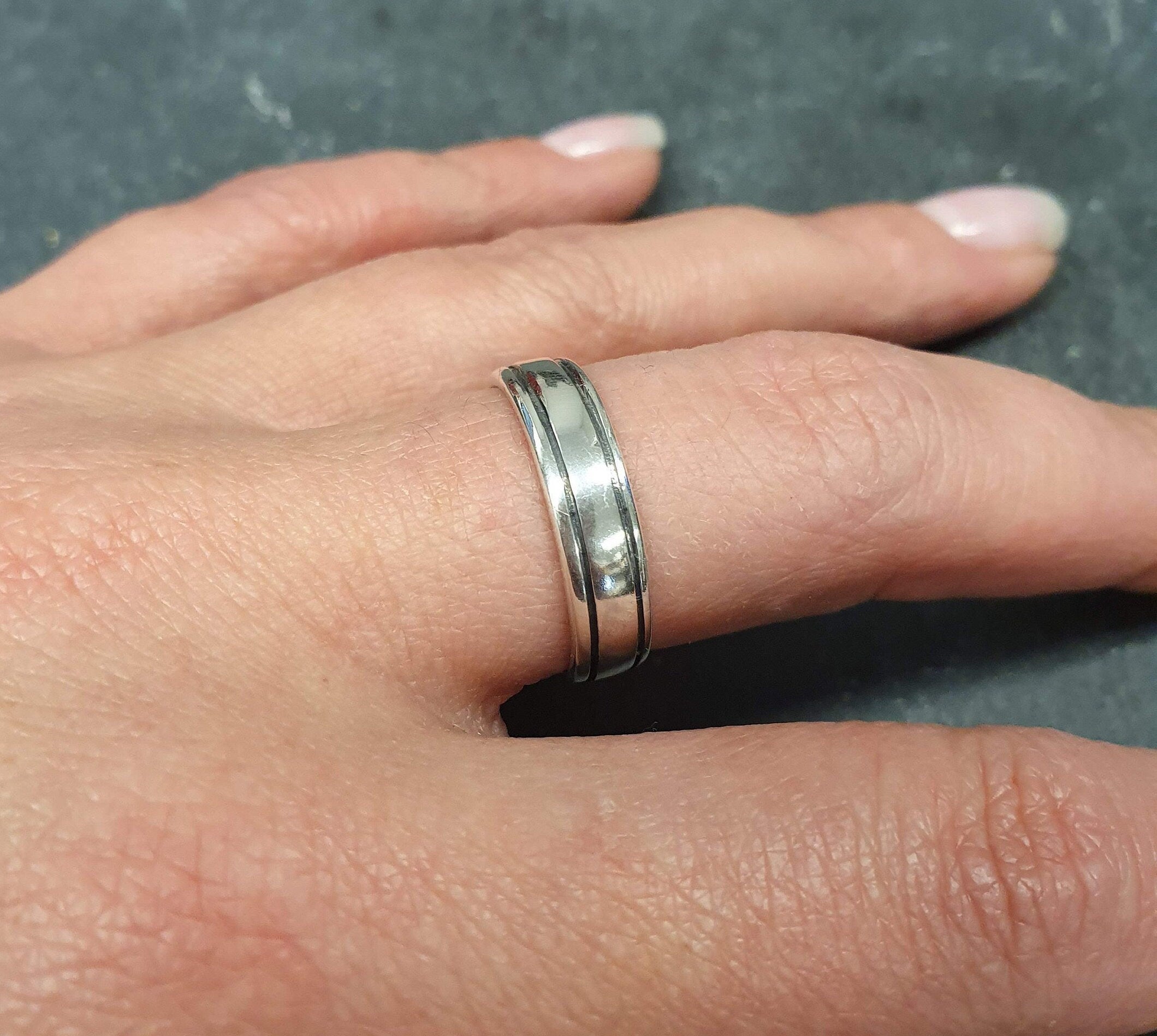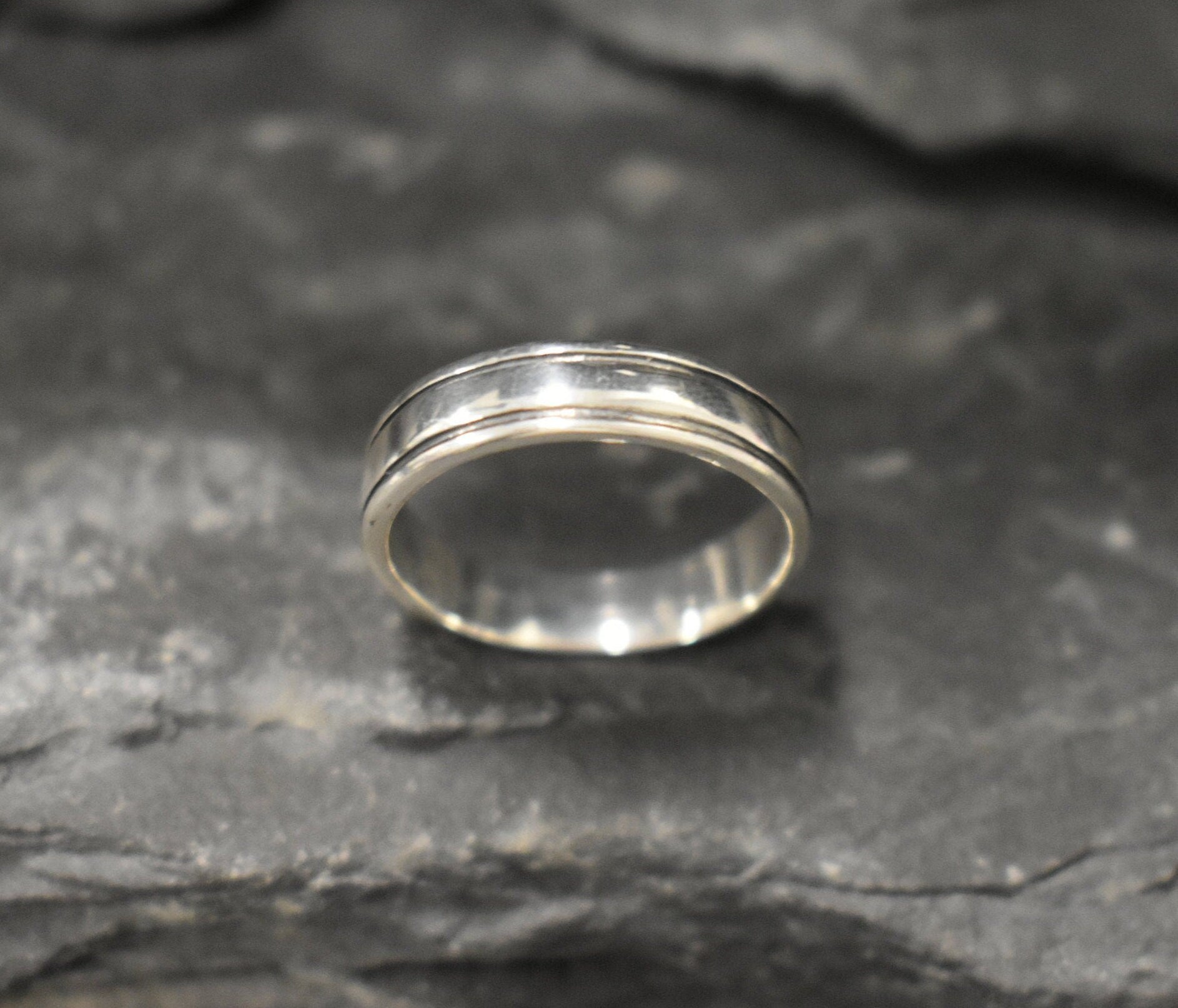 Minimalist Silver Band - Silver Linear Ring - Silver Wedding Band