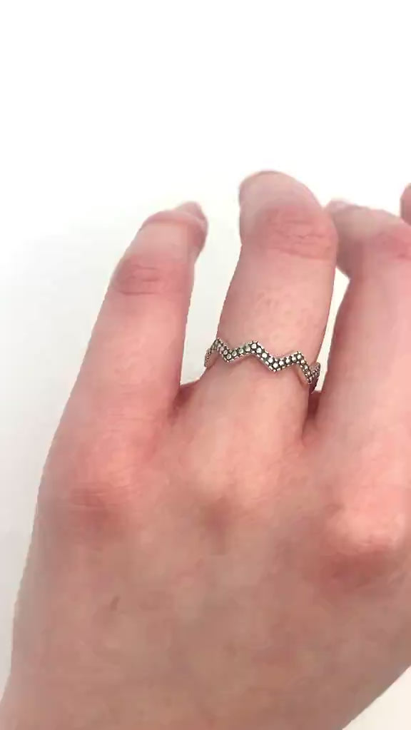 Silver Zigzag Ring - Beaded Eternity Band - Beaded Wave Ring