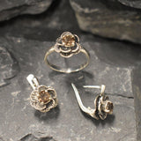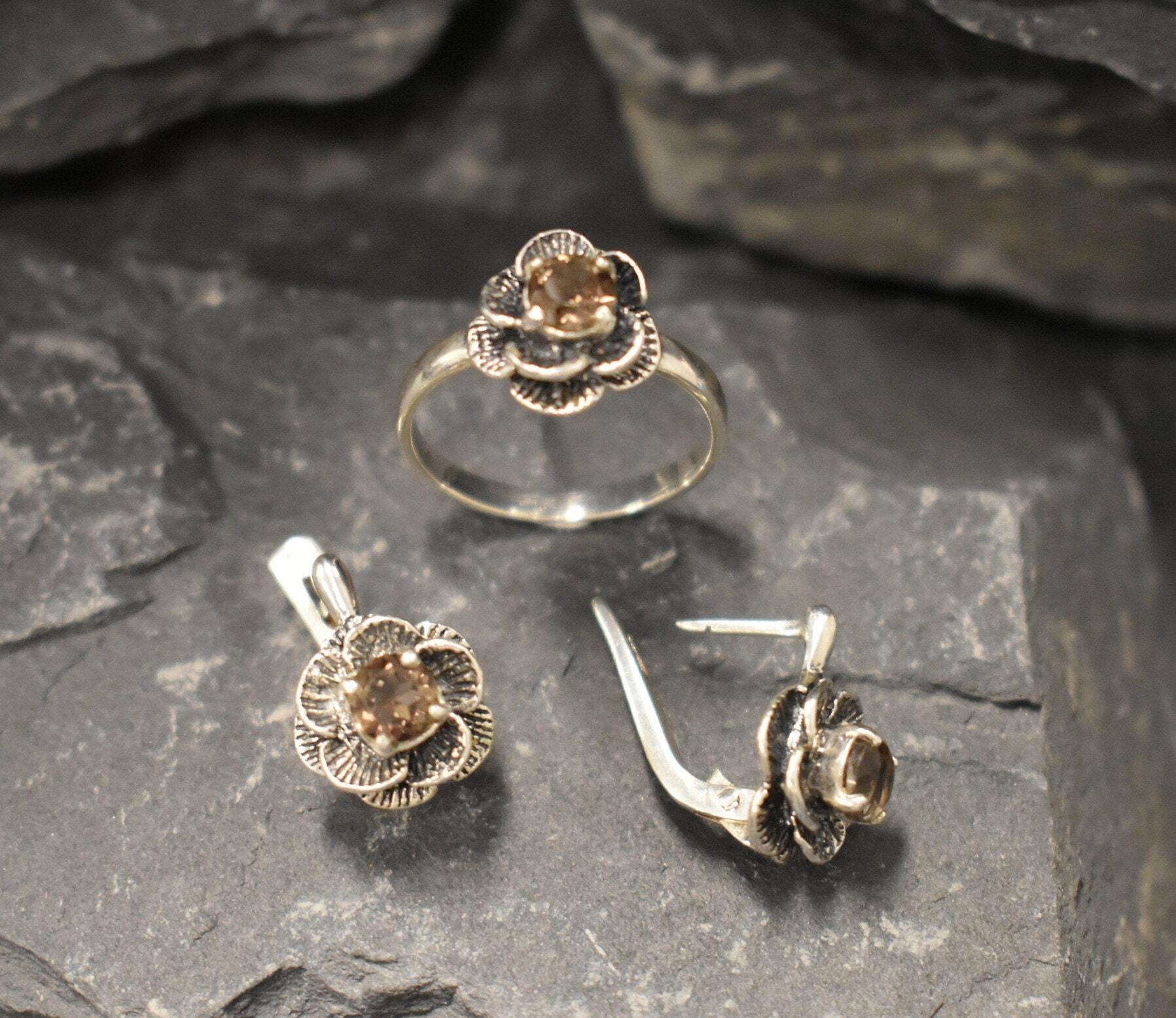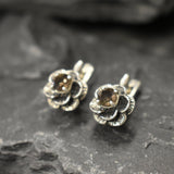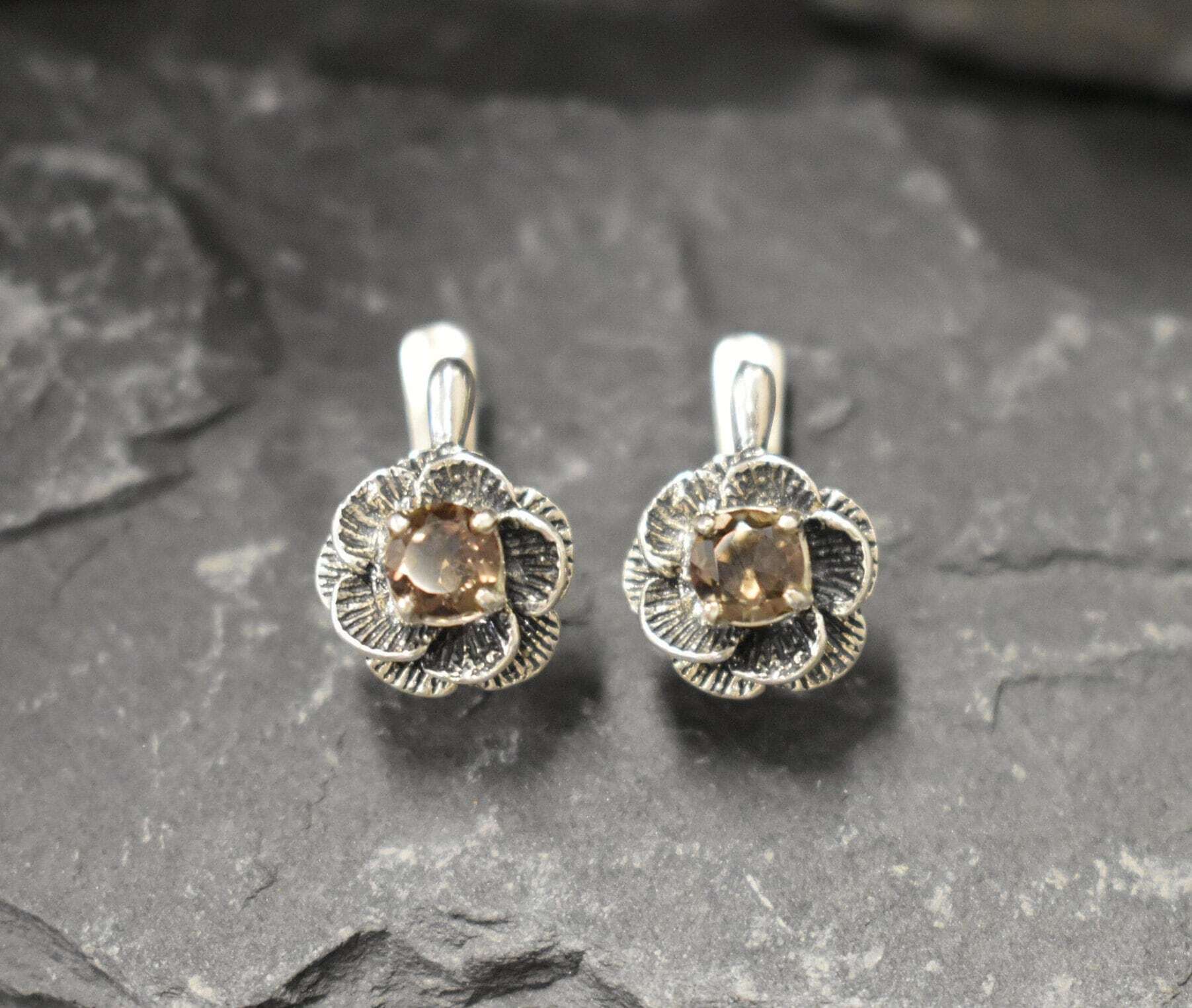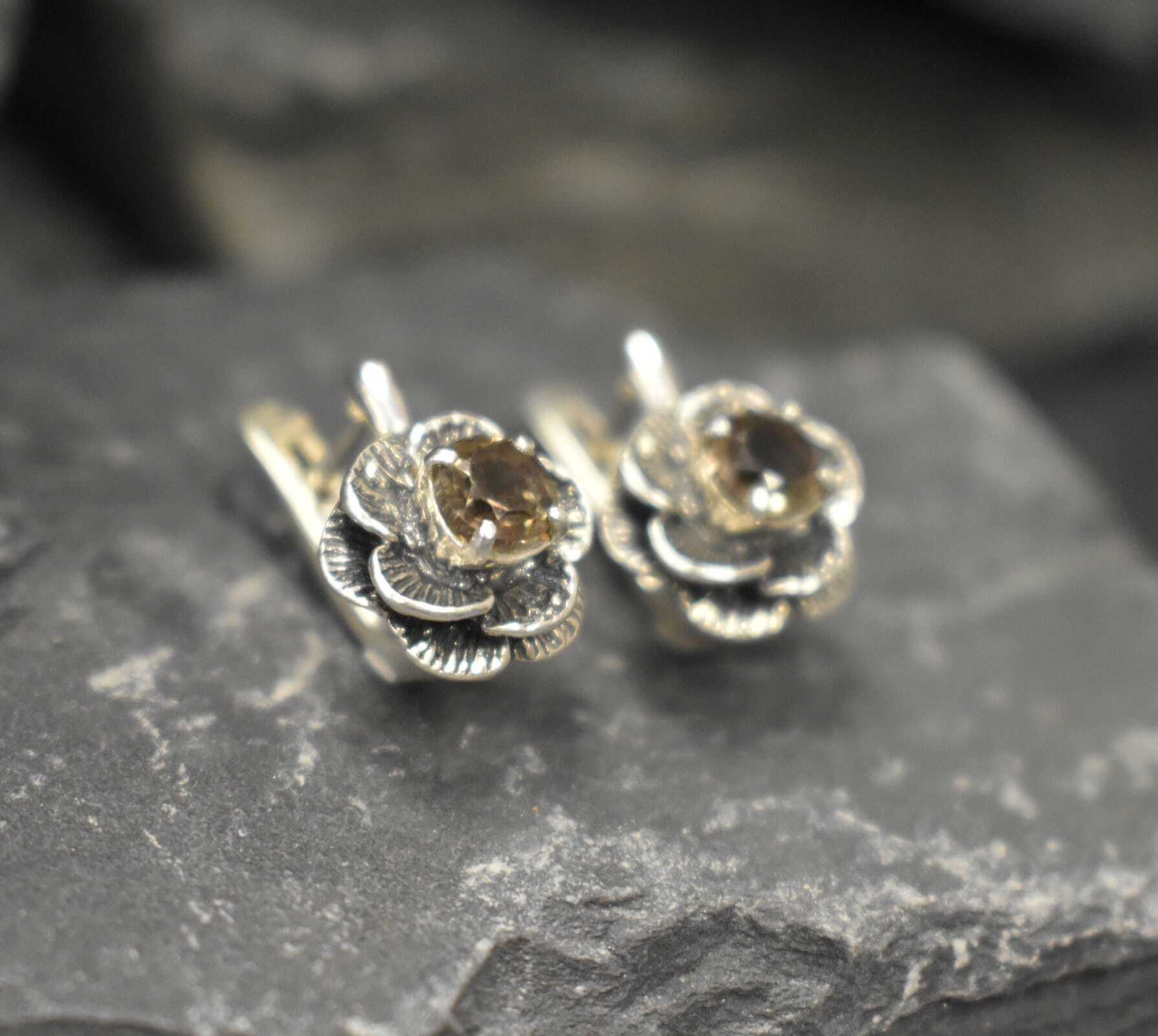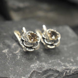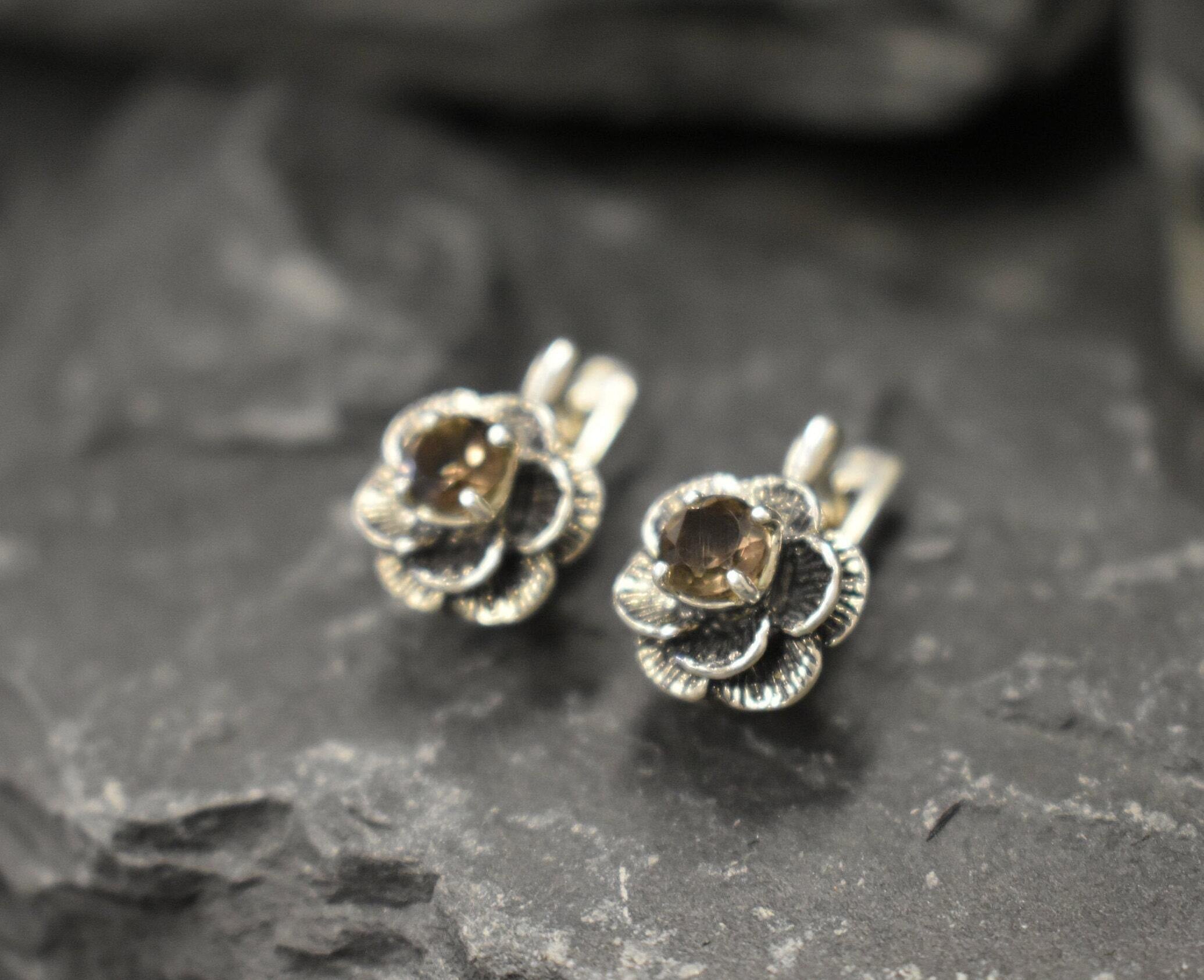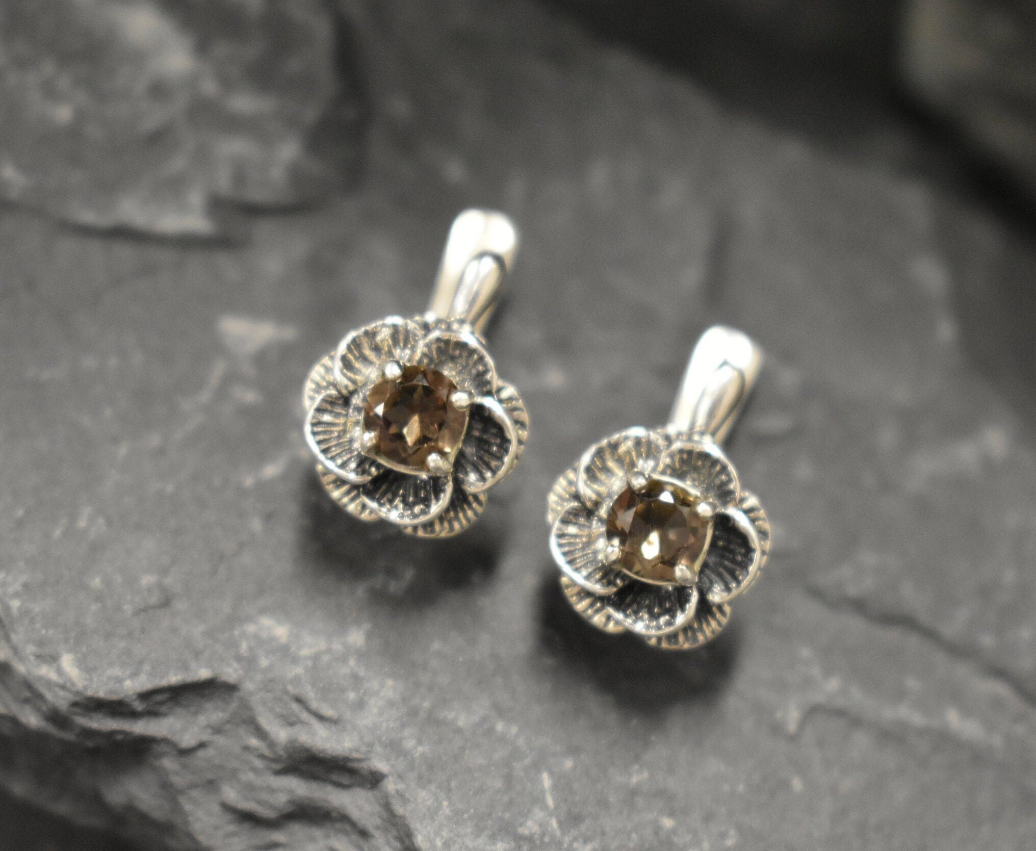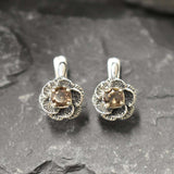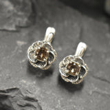 Smoky Topaz Earrings, Topaz Earrings, Natural Topaz, December Birthstone, Flower Earrings, Silver Floral Studs, Brown Floral Studs, Topaz
