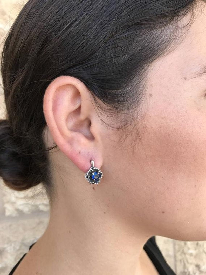 Genuine Quartz Earrings - Flower Topaz Studs - Smoky Topaz Earrings
