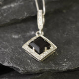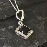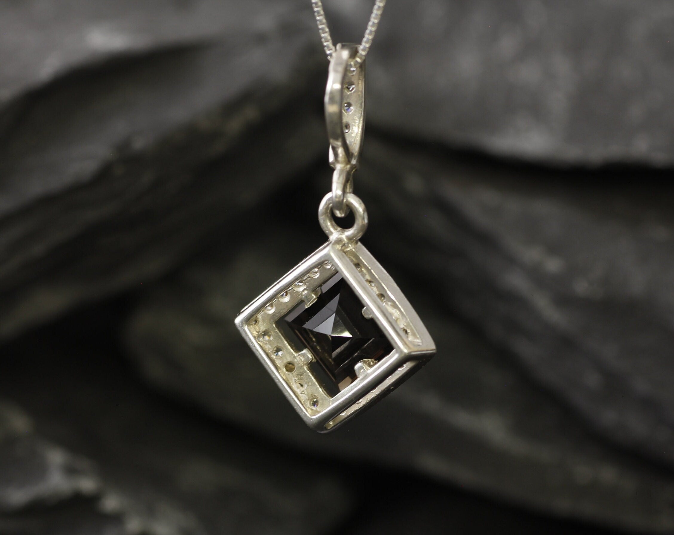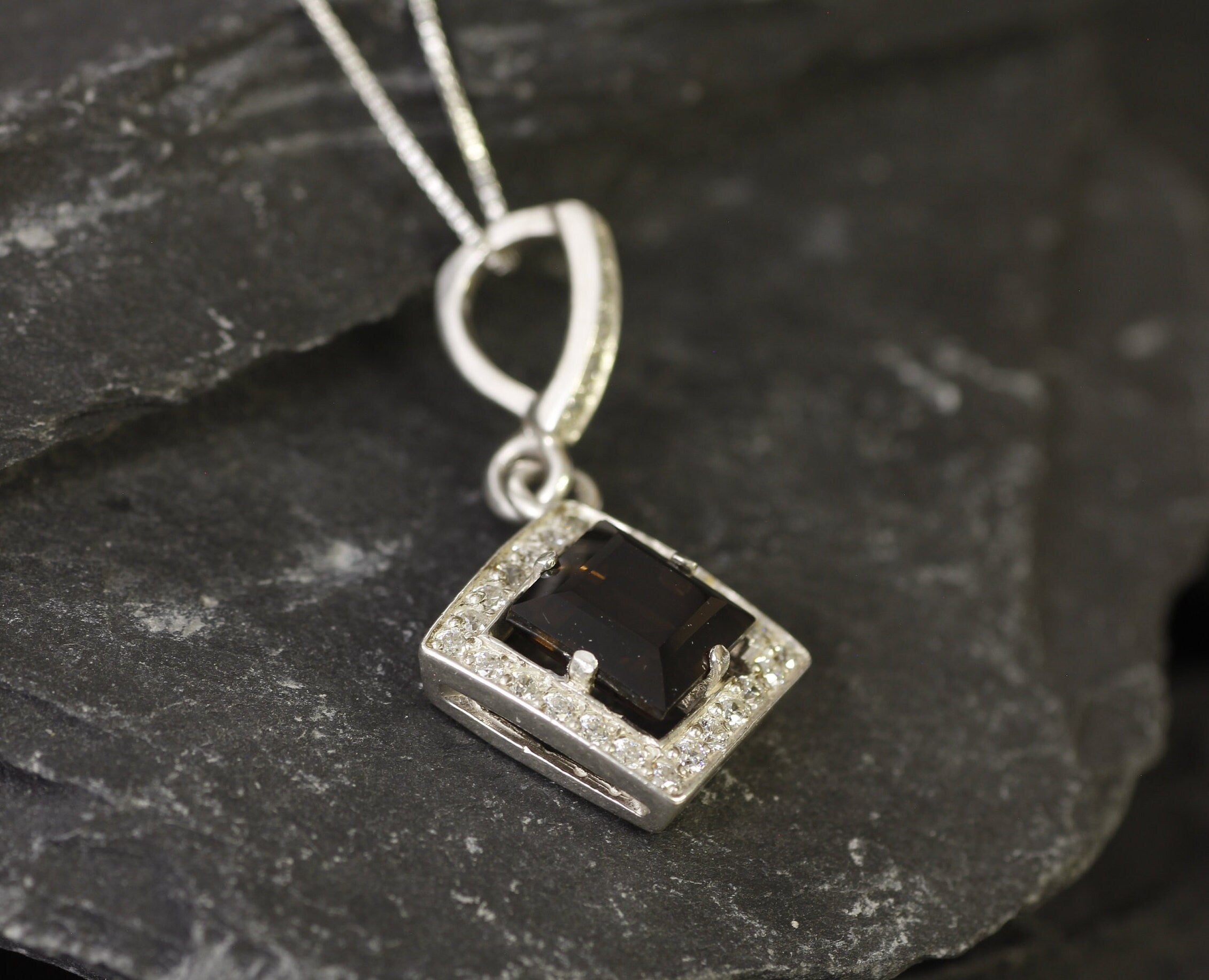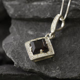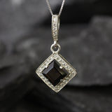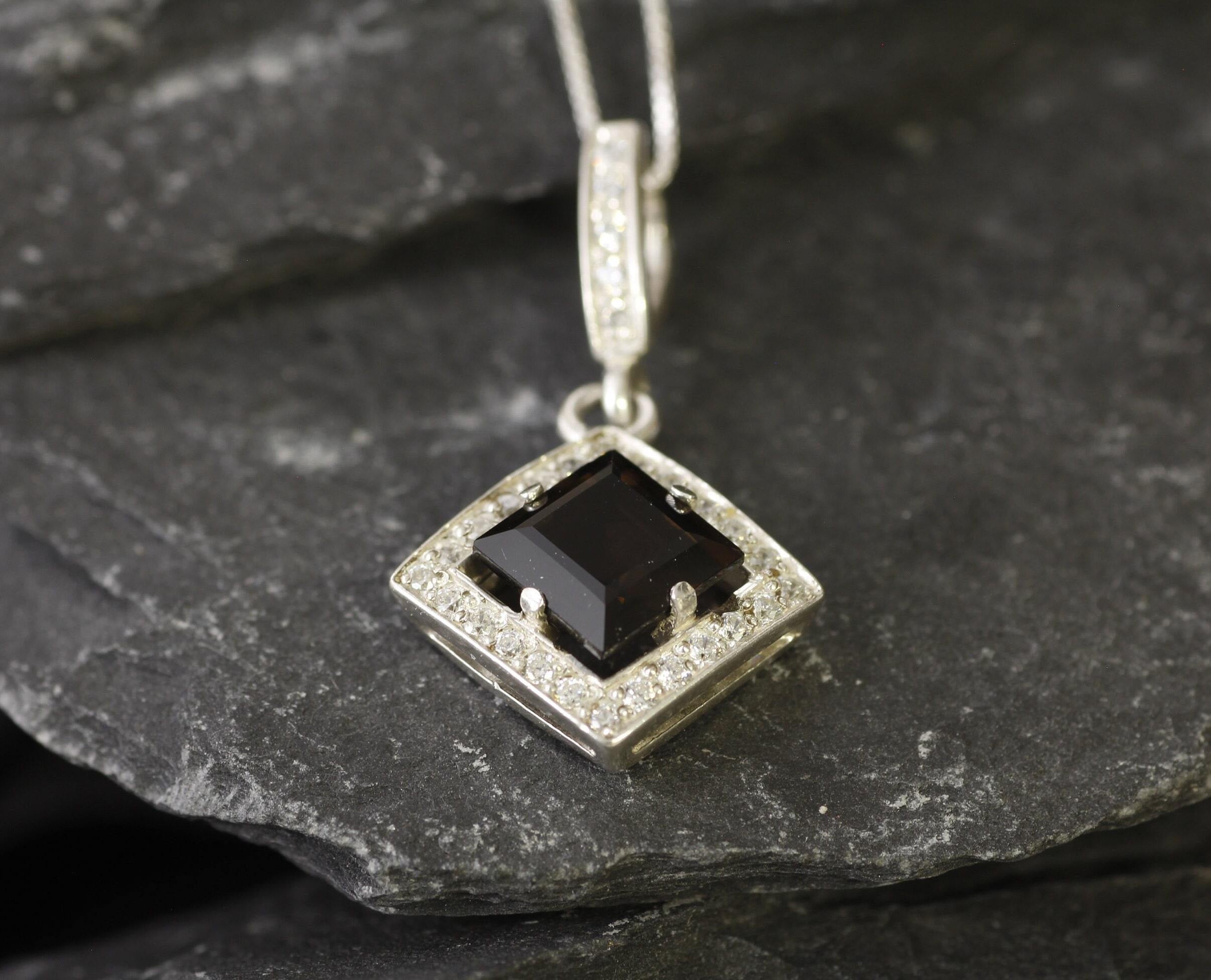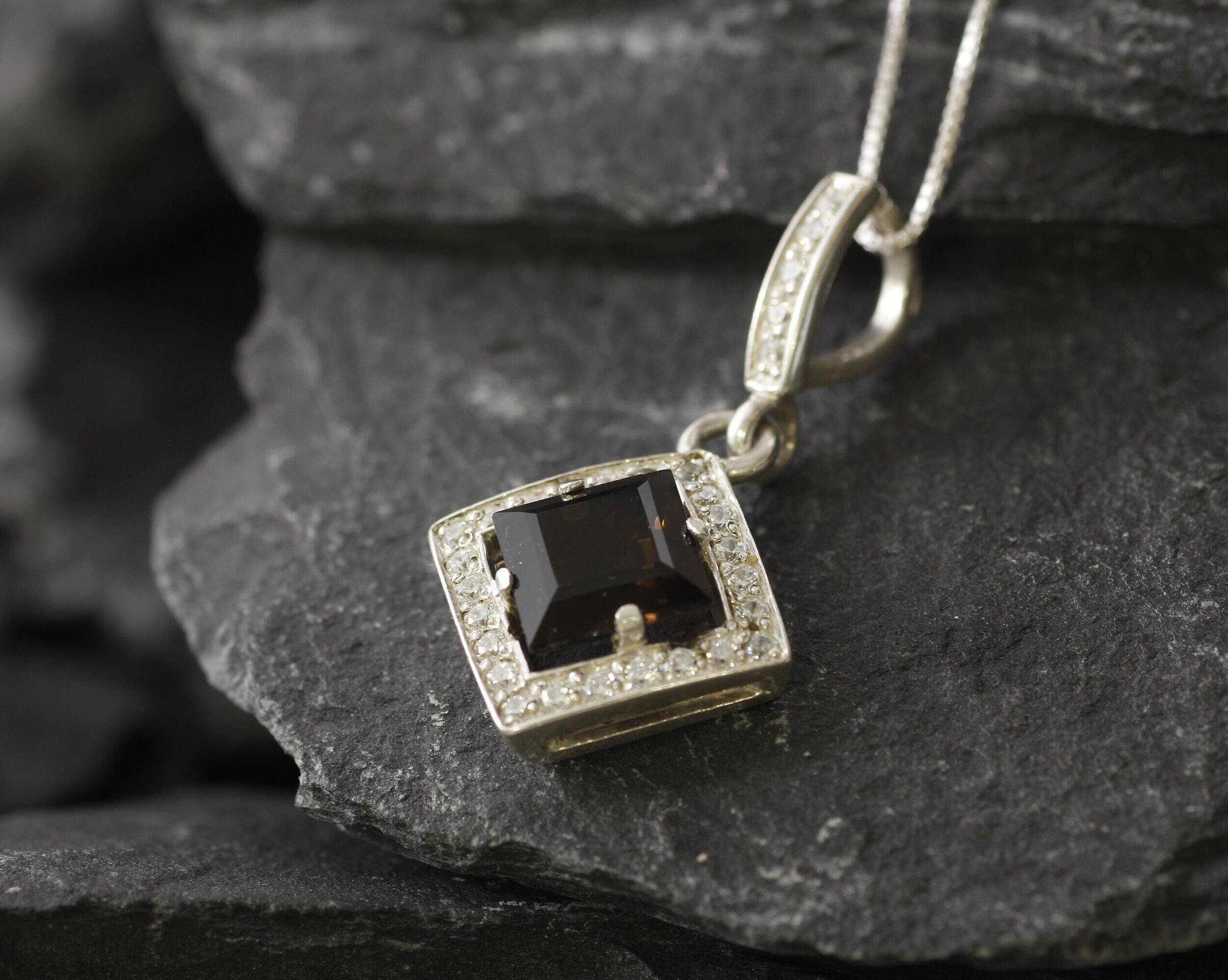 Smoky Topaz Necklace - Topaz Square Pendant - Vintage Smoky Topaz Necklace