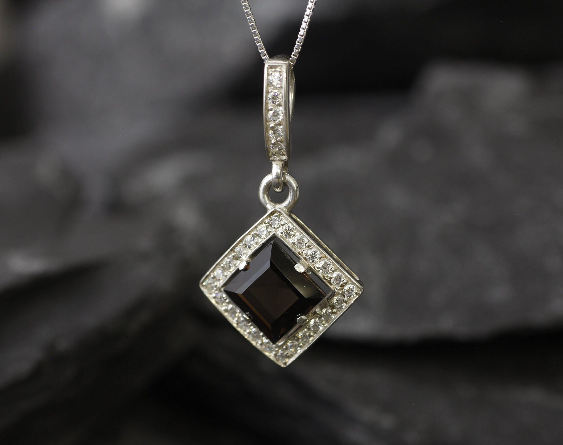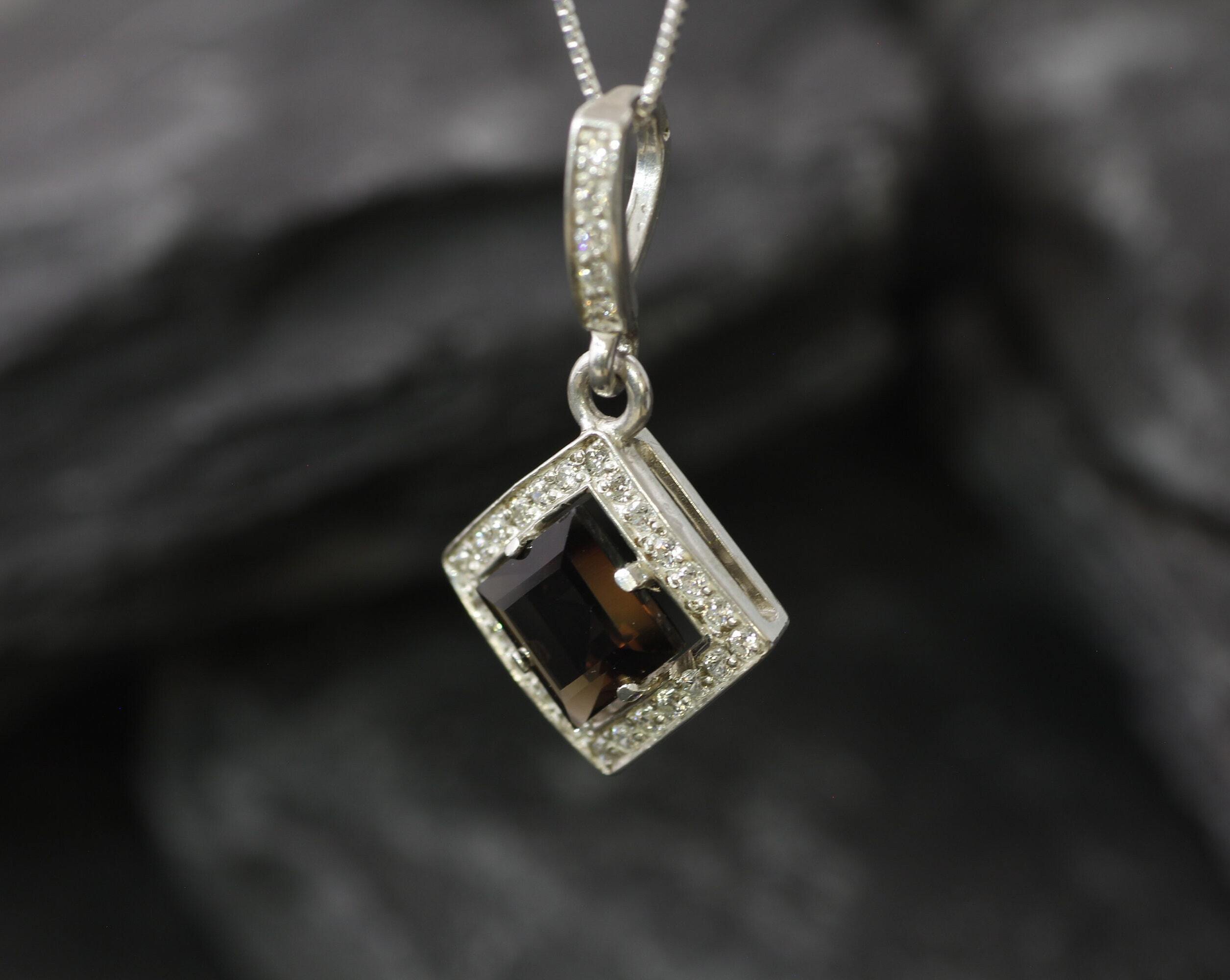 Smoky Topaz Pendant, Natural Smoky Topaz, Square Pendant, Princess Cut Pendant, Long Pendant, Vintage Pendant, Brown Pendant, 925 Silver