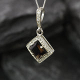Smoky Topaz Necklace set with Natural Smoky Topaz in a diamond cut & natural brown color, at size 8x8mm (3 Cts) from Brazil.