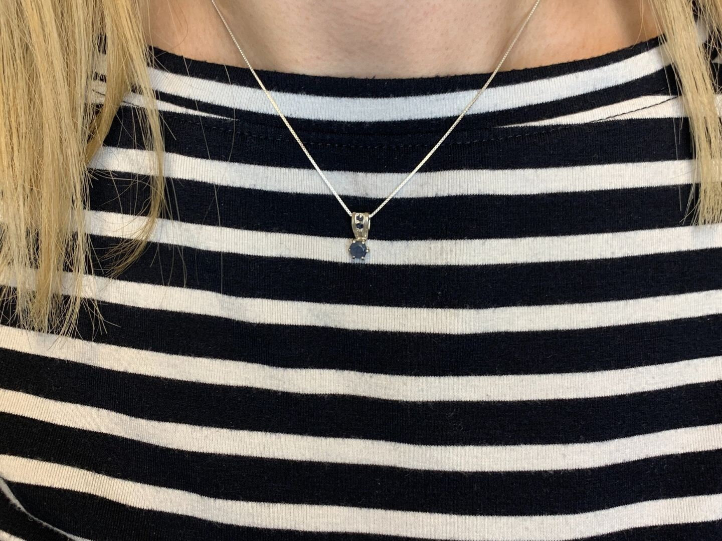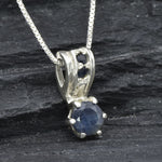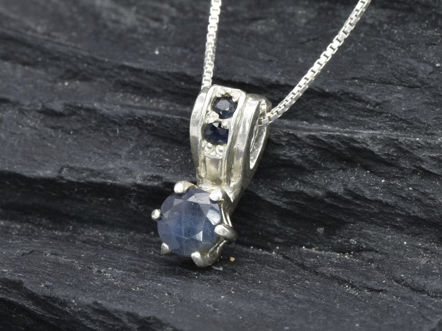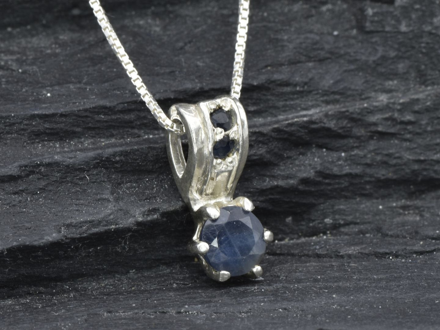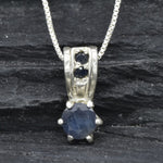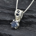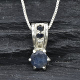 Blue Sapphire Pendant set with a Natural Sapphire in a diamond cut, natural patterns & natural blue color, at 5mm &2mm size each, (0.6 Cts combined) from Burma. Solid 925 Sterling Silver ☞ made to last.