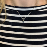 Necklace length guide from 16 inch, 18 inch and 20 inch Adina Stone necklaces, real neck view.