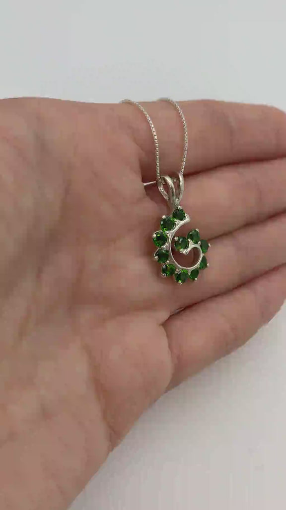 Chrome Diopside Pendant - Green Spiral Necklace - Silver Spiral Necklace