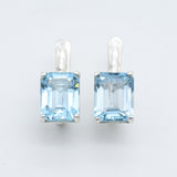 Blue Square Earrings set with a Natural Blue Topaz in a perfect diamond radiant cut, flawless clarity & stunning Sky Blue color, at size 10x8mm each (6 Cts a pair) from Brazil.