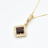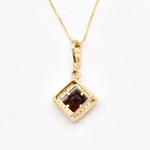 Square Garnet Pendant - Genuine Garnet Necklace - Red Rhombus Necklace