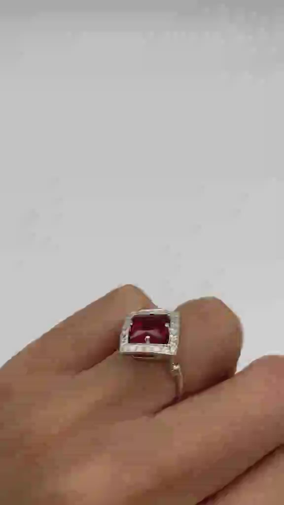 Square Ruby Ring - Red Vintage Ring - Classy Cocktail Ring