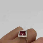 Created Ruby Ring made in 925 Sterling Silver with Square Created Red Ruby in Halo setting, July Birthstone gift idea, symbolizes nobility, purity, and passion, ideal for everyday wear and perfect for birthday gifting and special occasions.