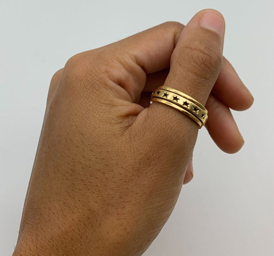 Star Spinner Ring - Gold Stars Band, Spinning Stars Ring