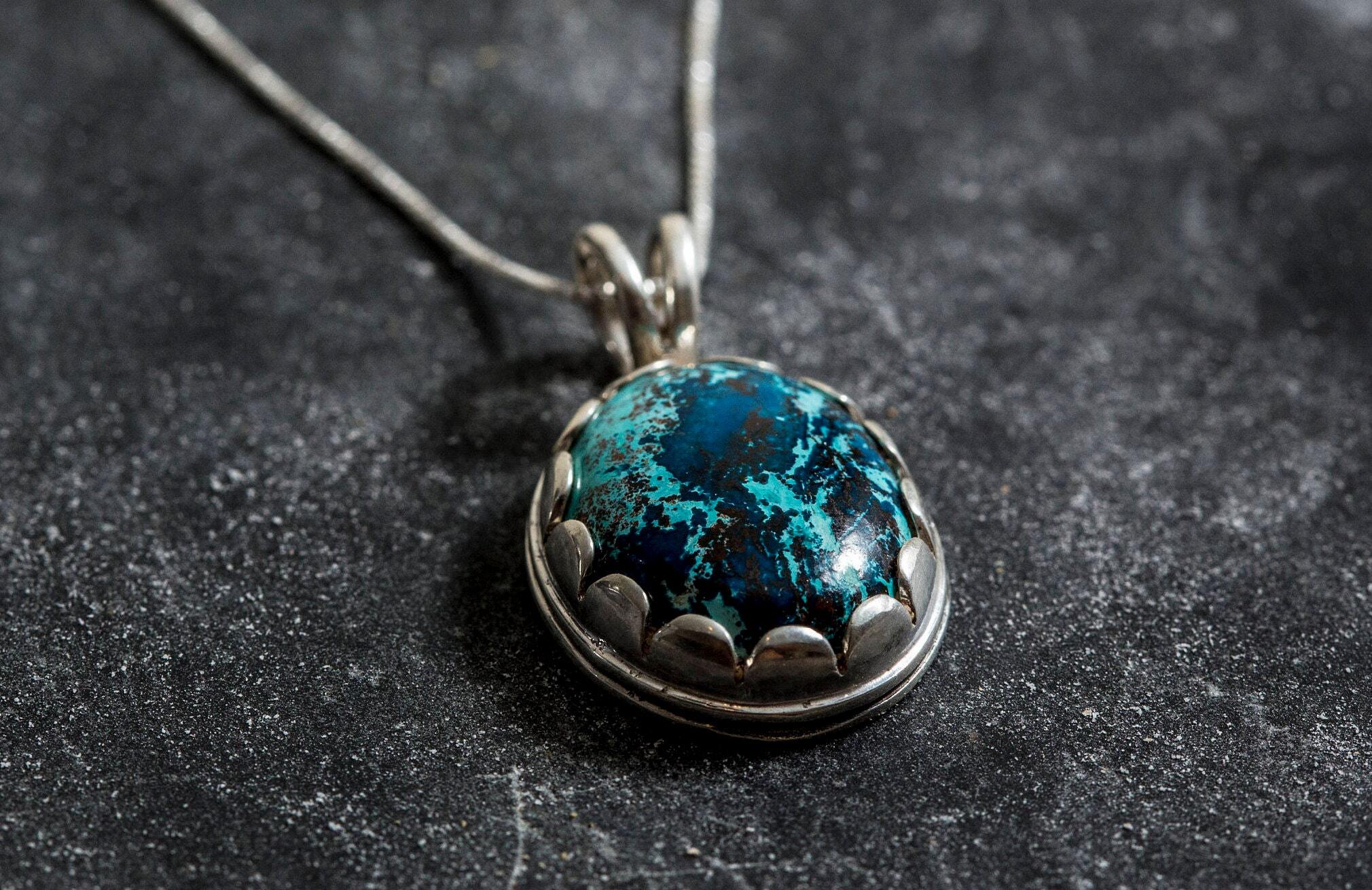 Statement Pendant, Chrysocolla Pendant, Blue Chrysocolla, Sagittarius Pendant, Unique Pendant, Blue Pendant, Silver Pendant, Chrysocolla
