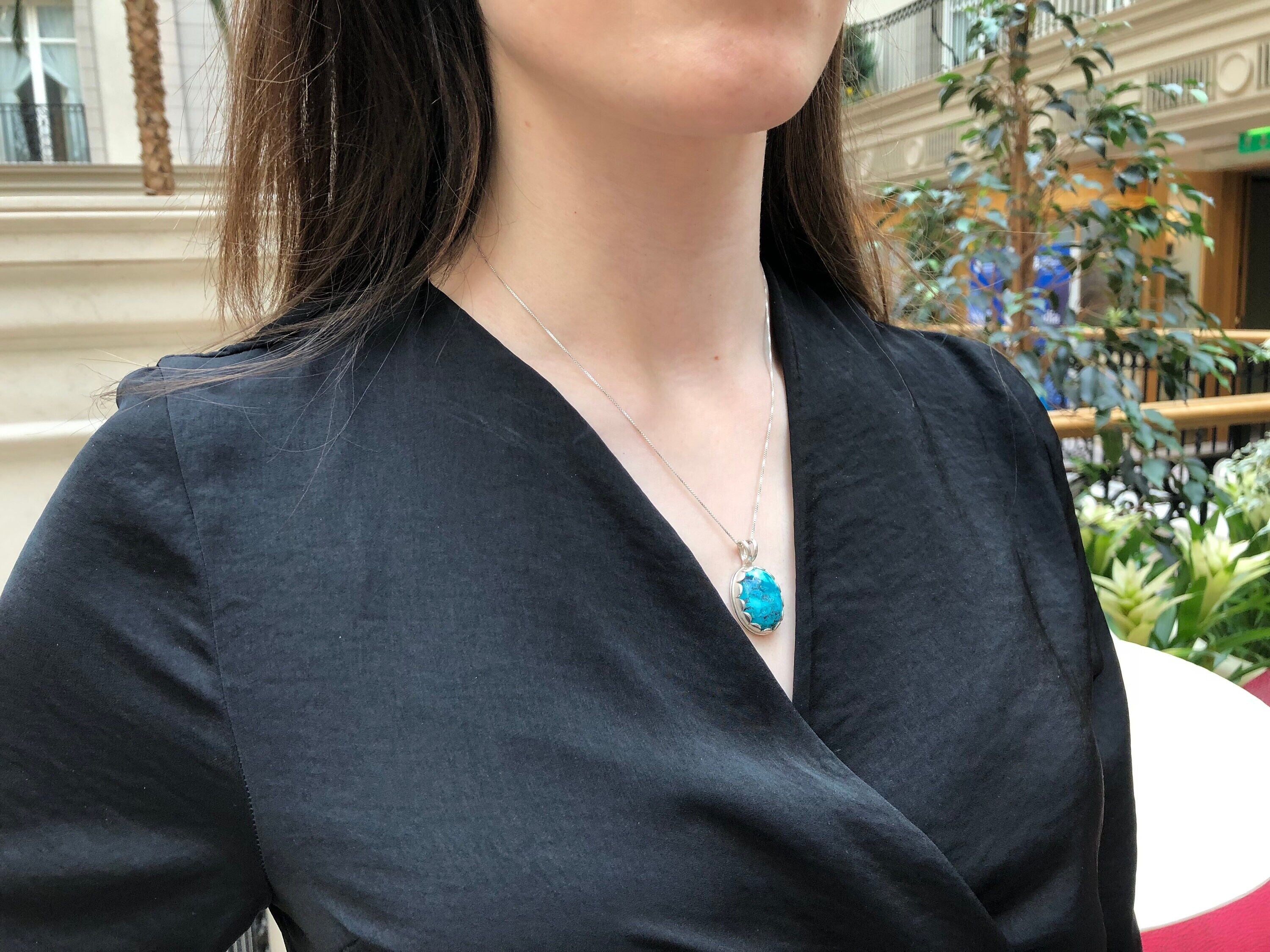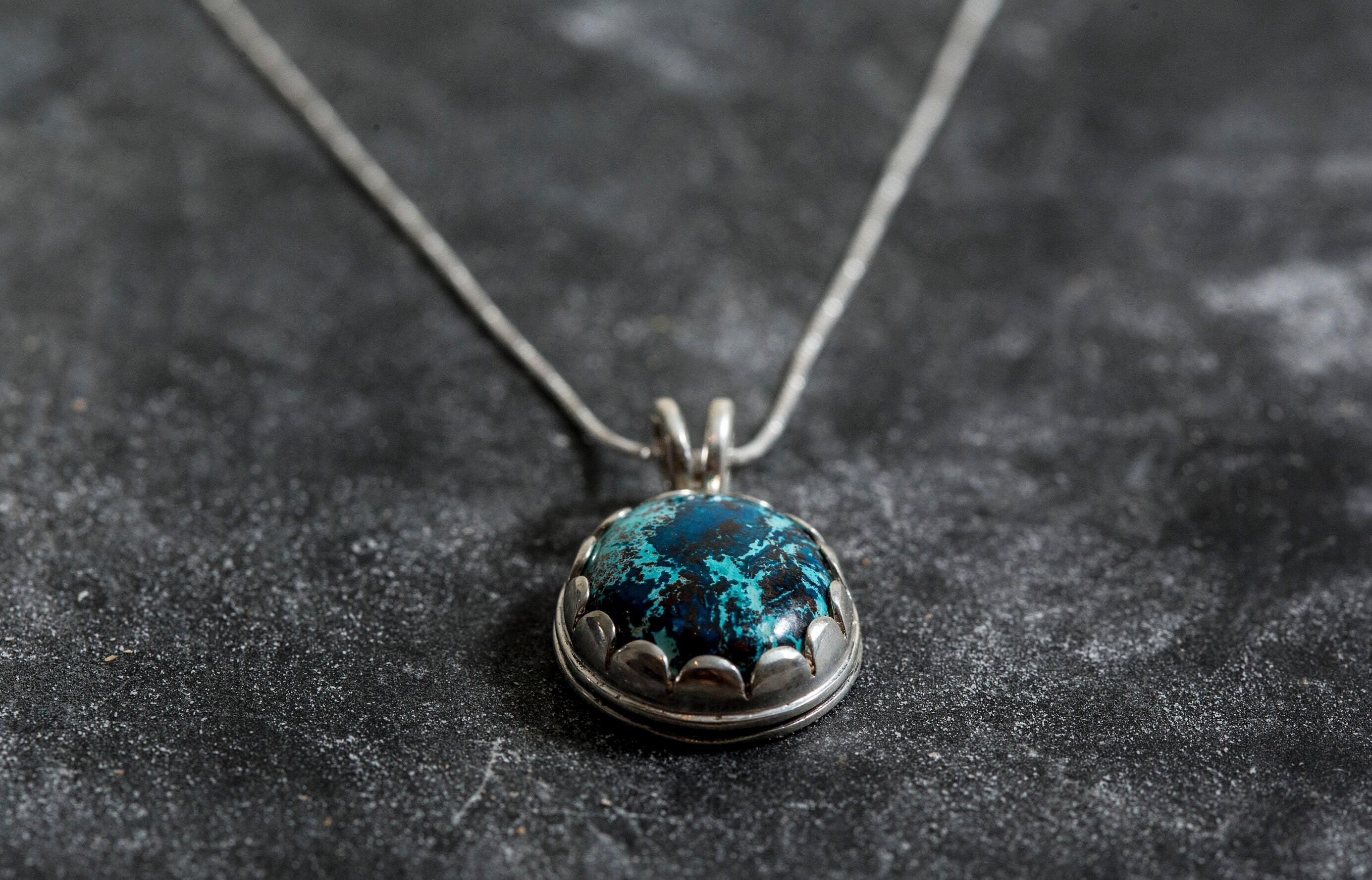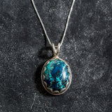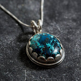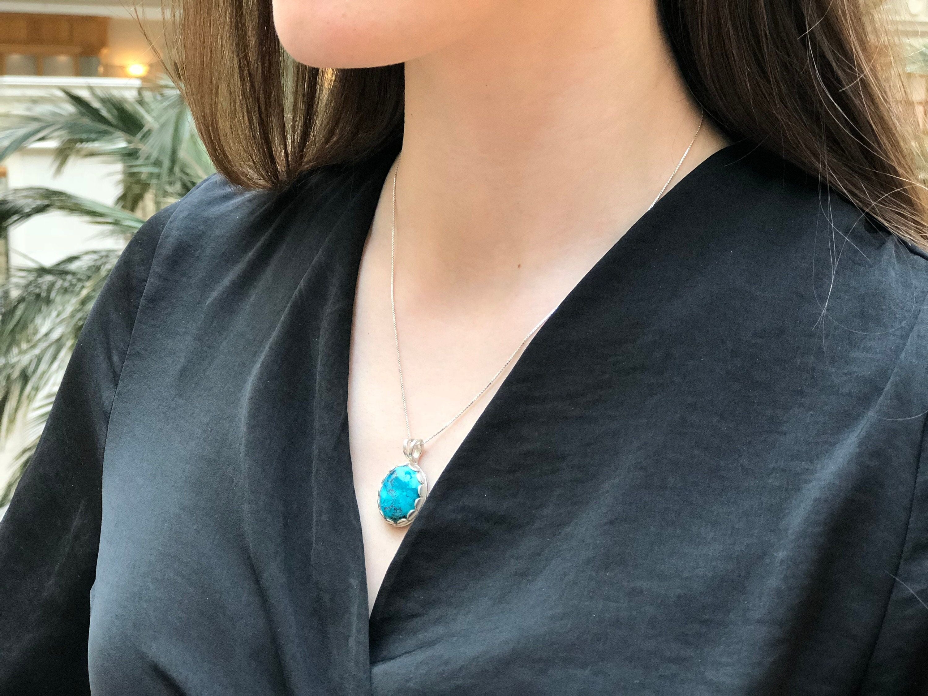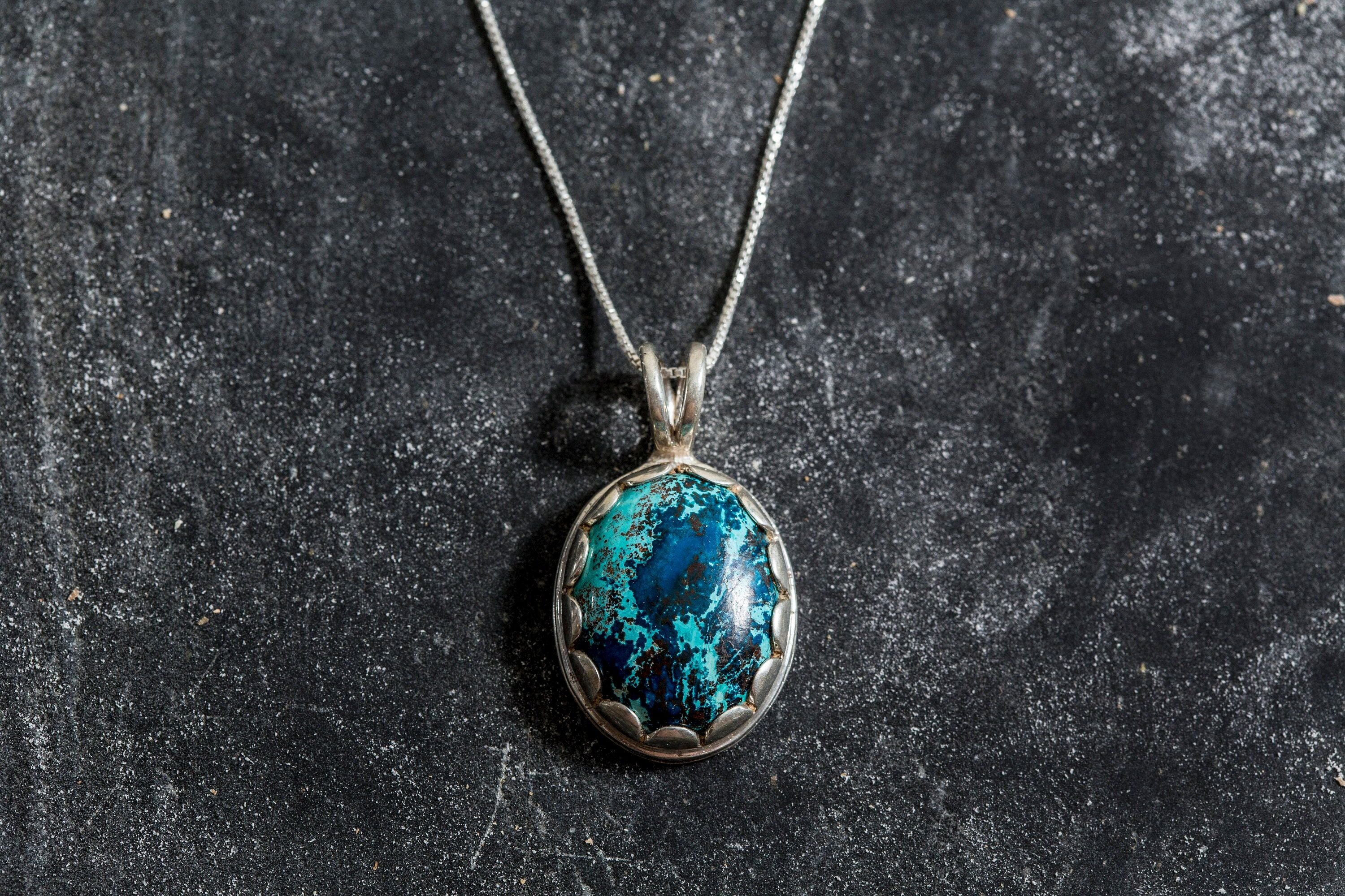 Statement Pendant set with a Natural Chrysocolla in a top grade & natural color, at 20x15mm size (15 Cts) from Peru.