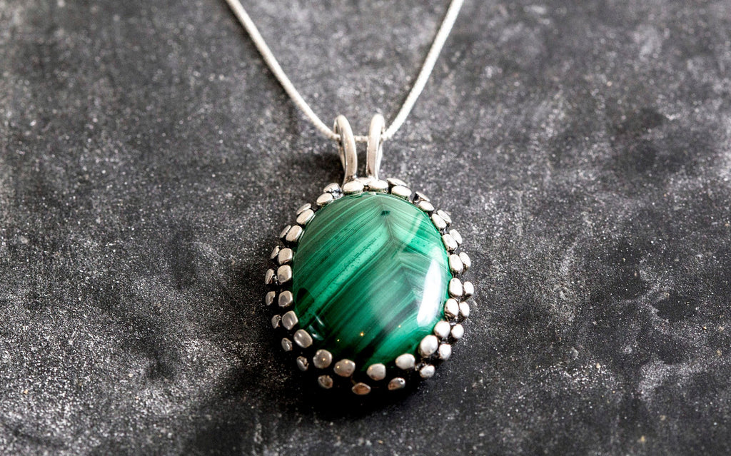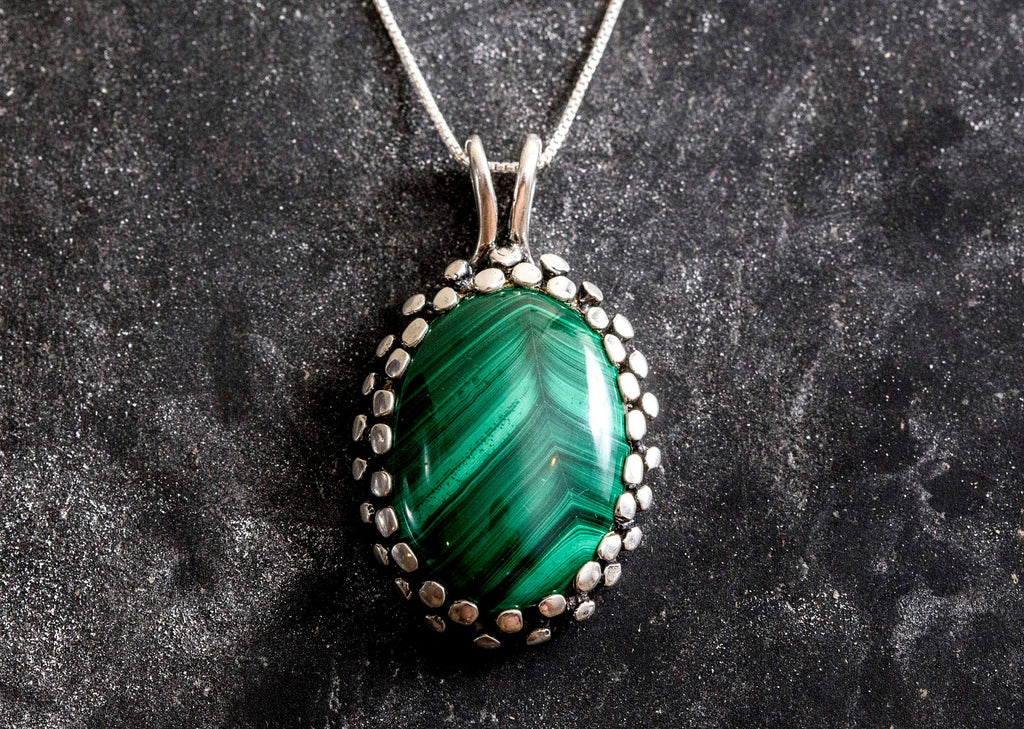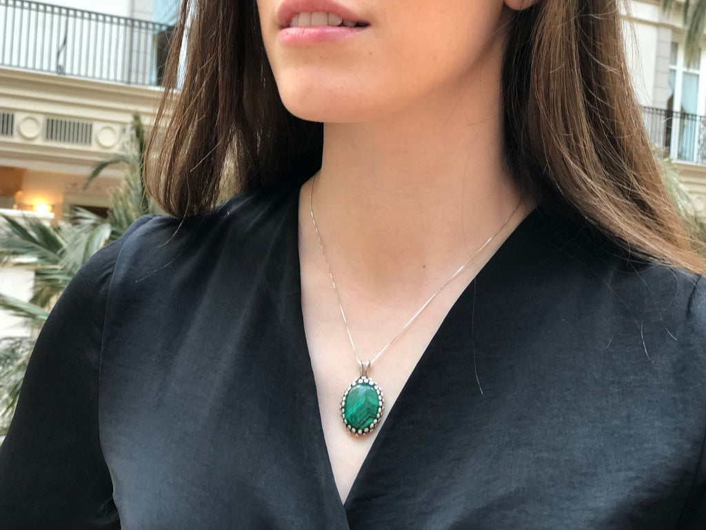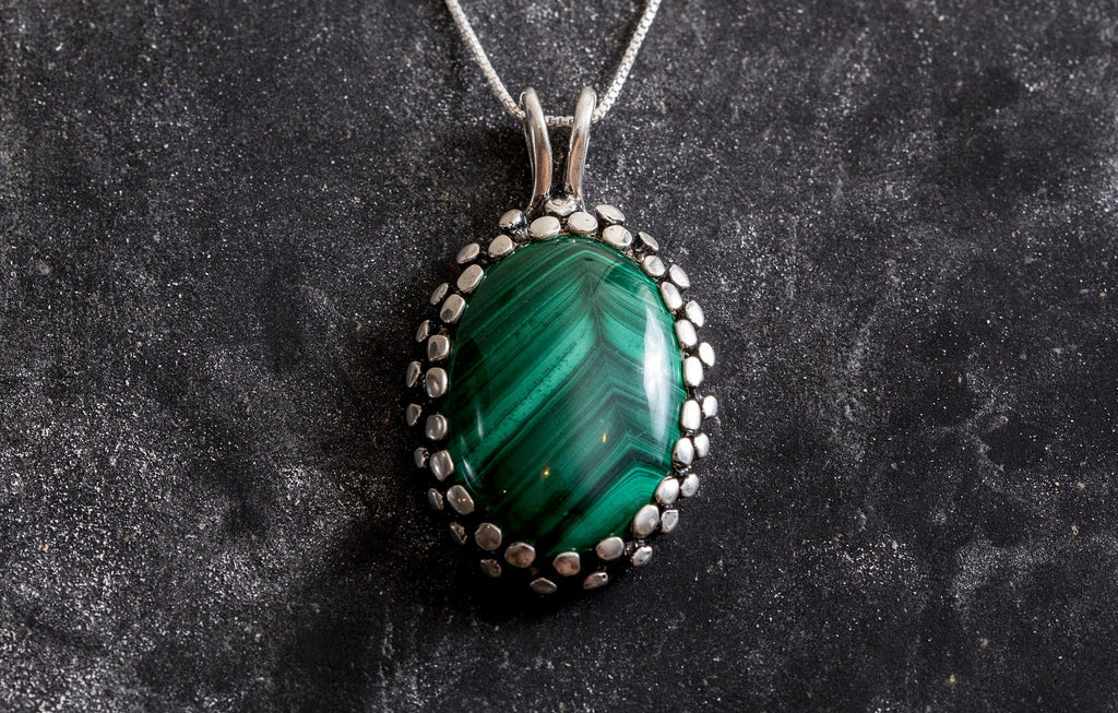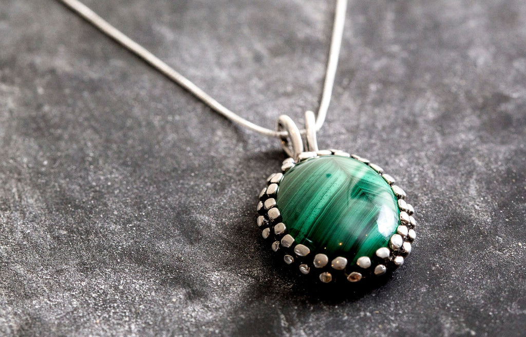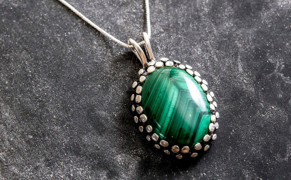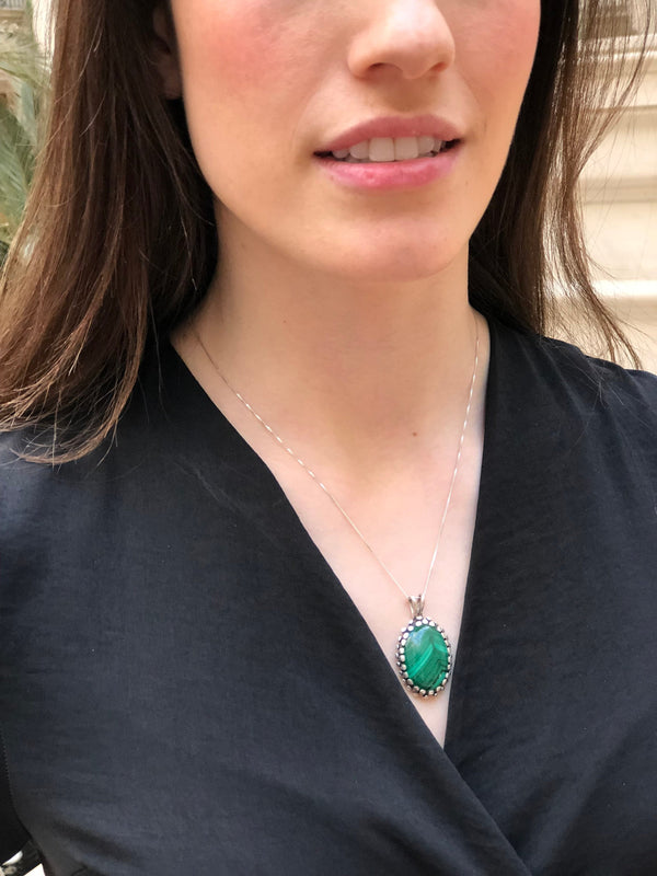 Malachite Pendant - Natural Malachite Necklace - Green Statement Necklace