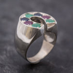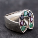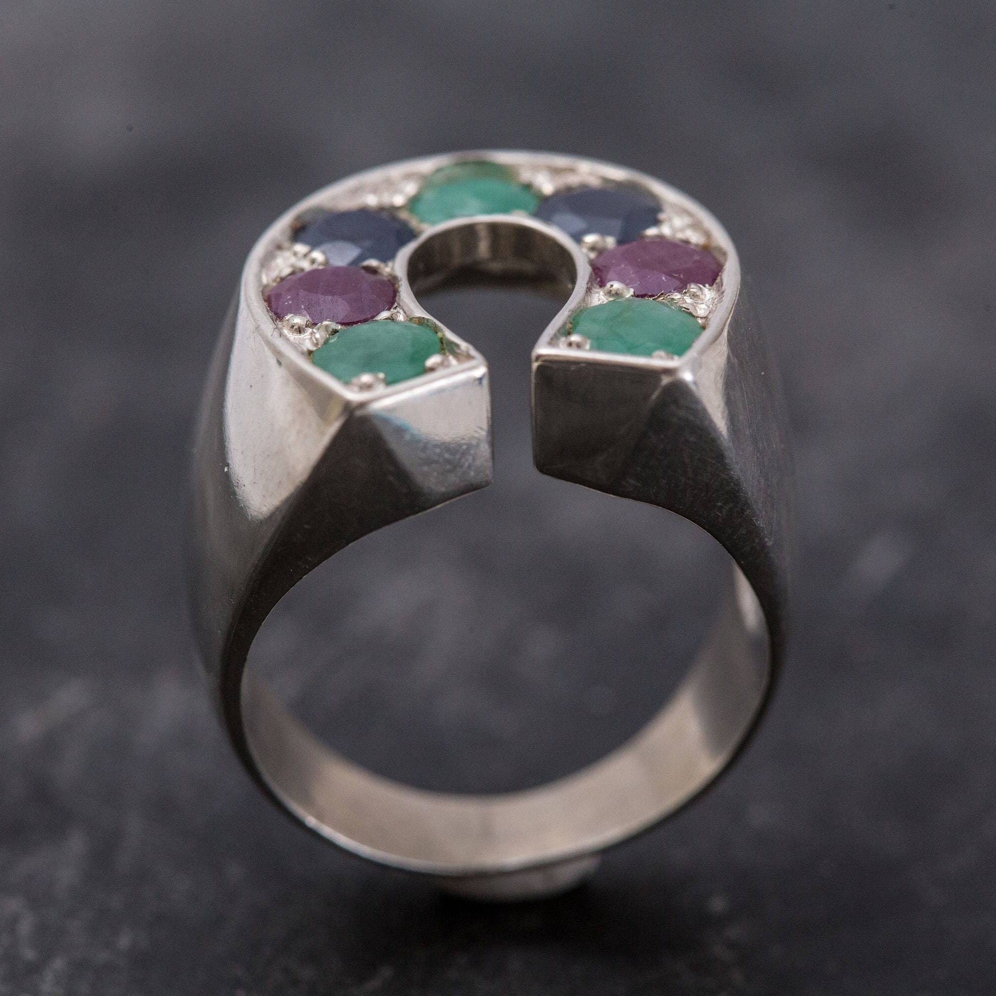 Emerald Statement Ring - Horseshoe Silver Ring - Multistone Ring
