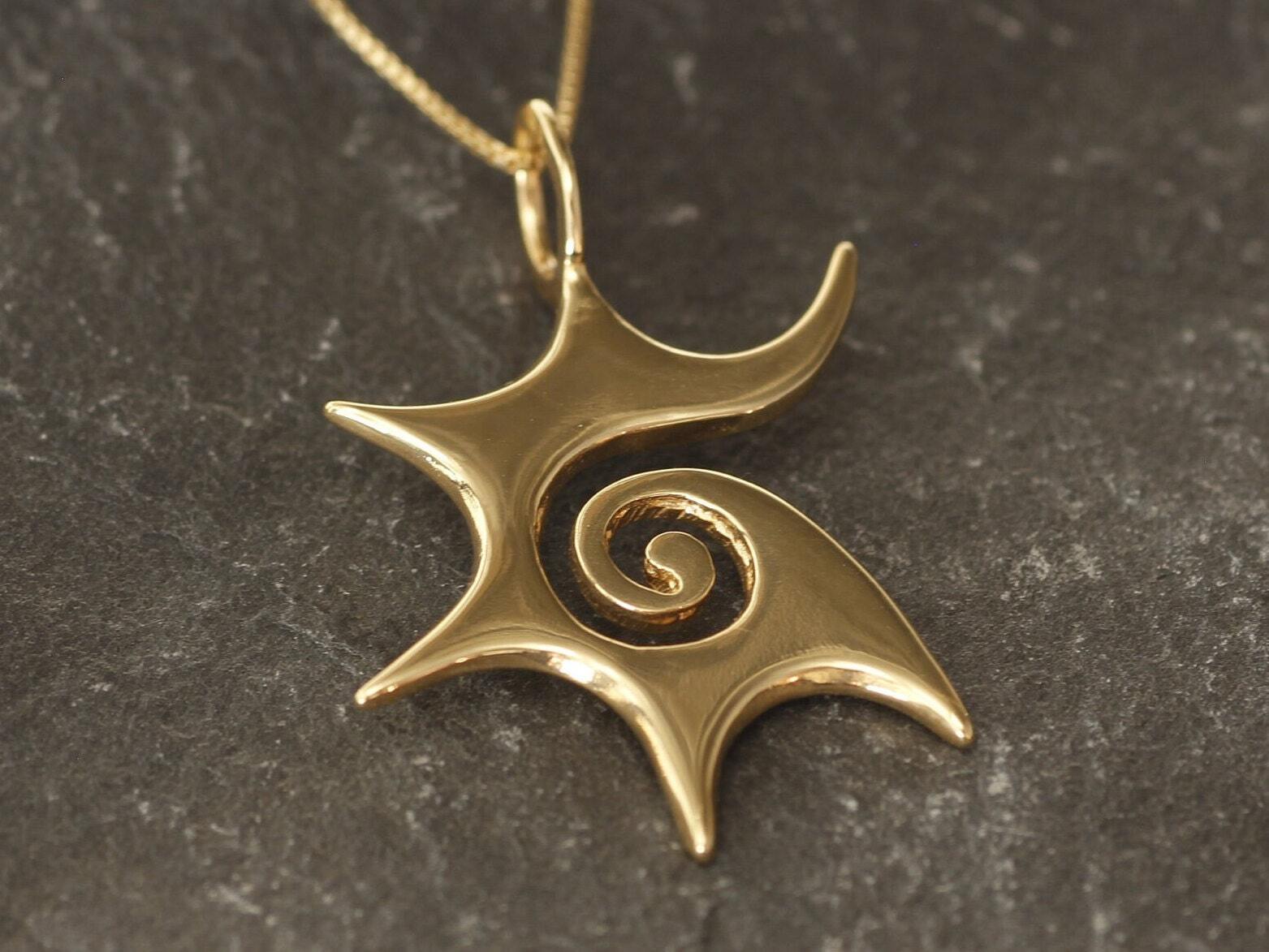 Gold Sun Pendant, Gold Plated Pendant, Boho Necklace, Swirl Pendant, Statement Pendant, Artistic Pendant, Star Necklace, Vermeil Pendant(2)
