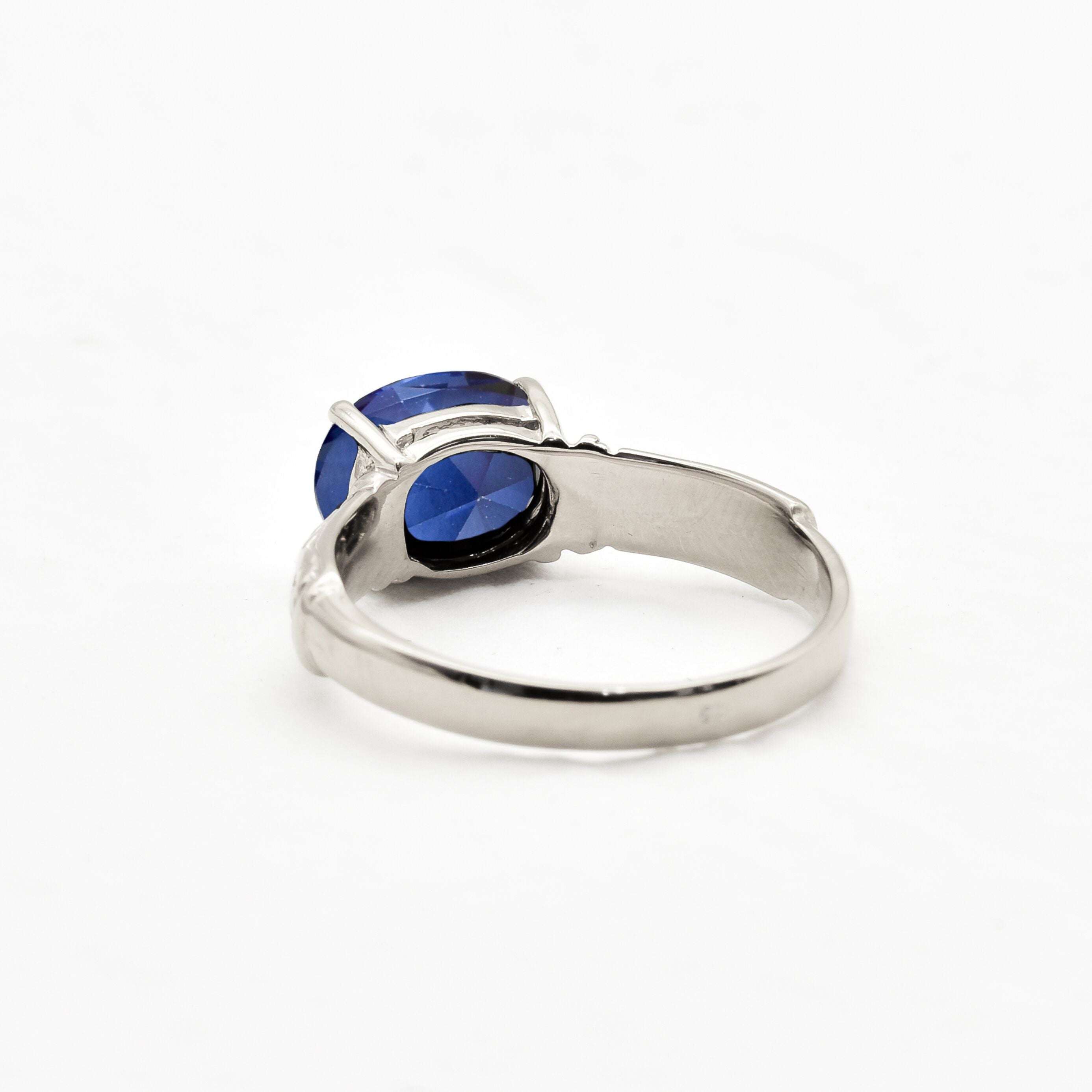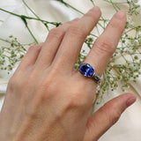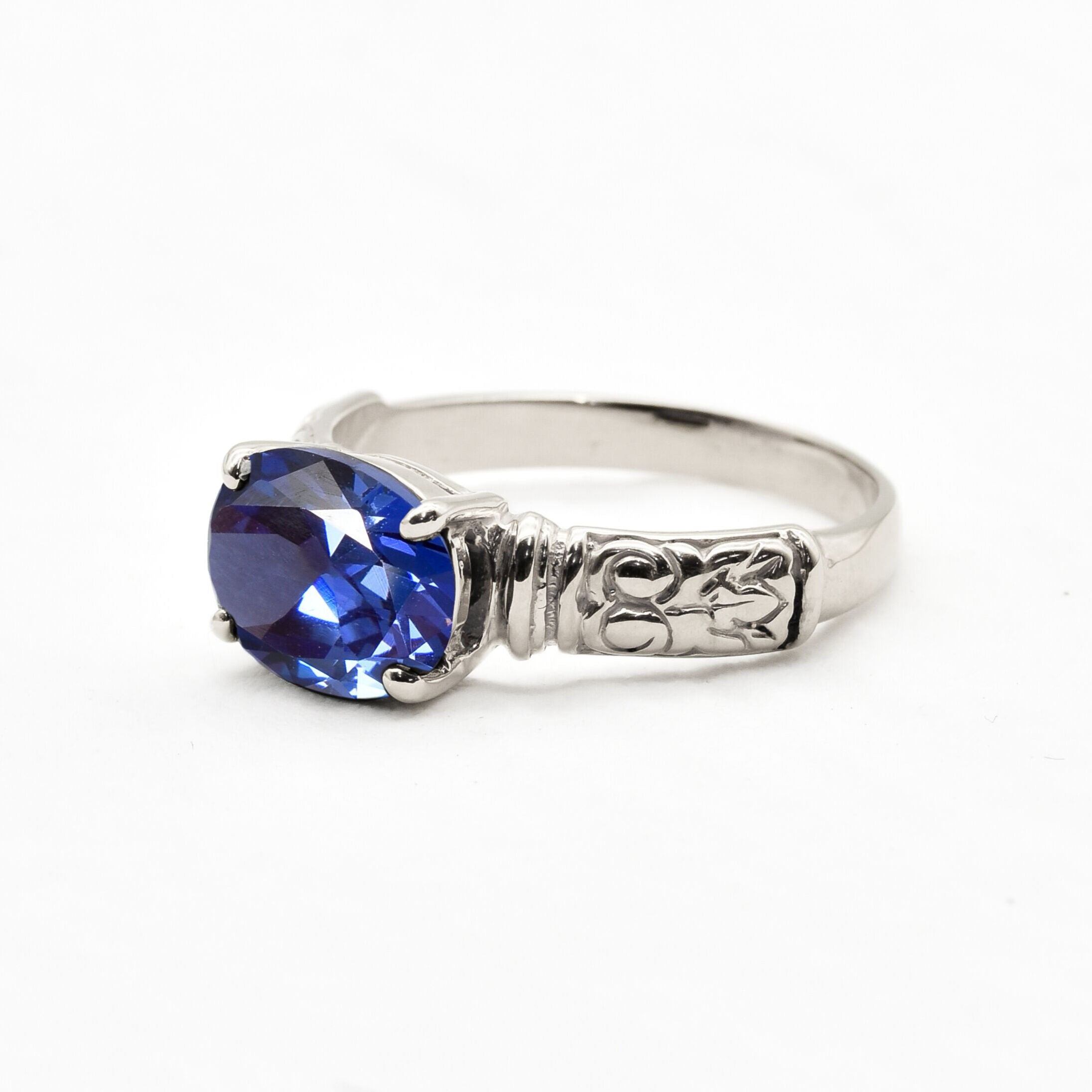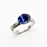 Tanzanite Boho Ring set with a Created Tanzanite in a diamond cut, flawless clarity & stunning purple/blue color, at 10x8mm (3 Cts).