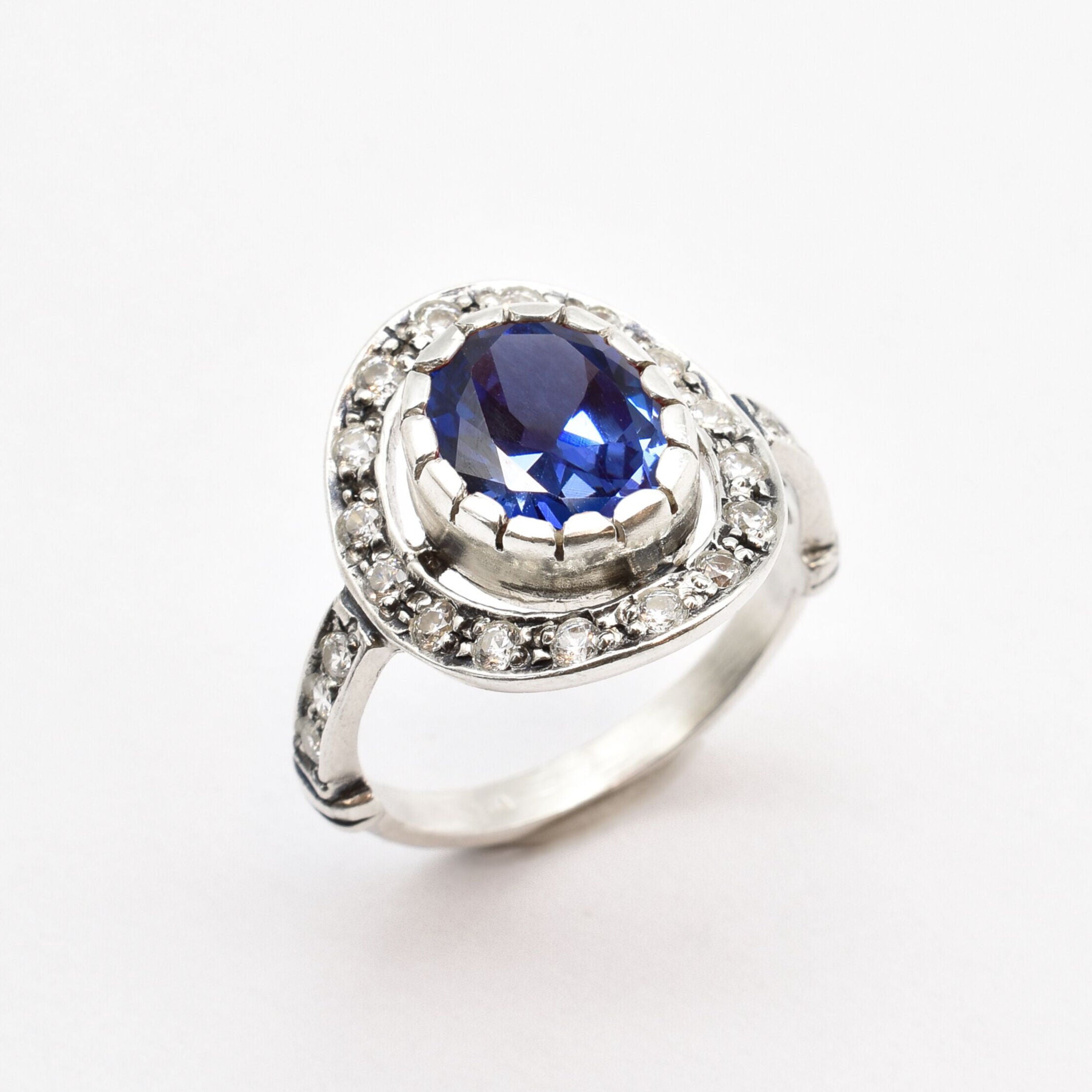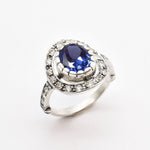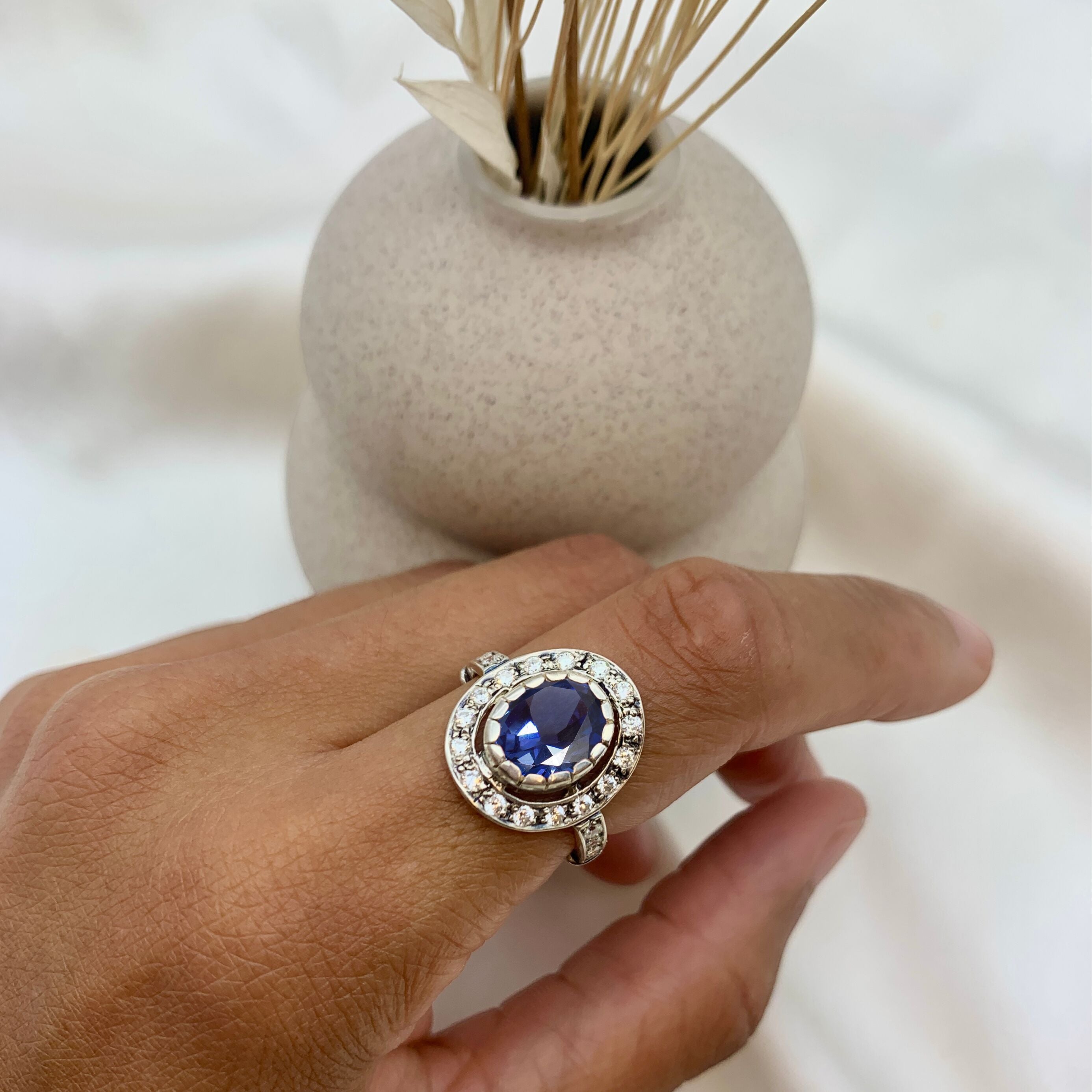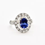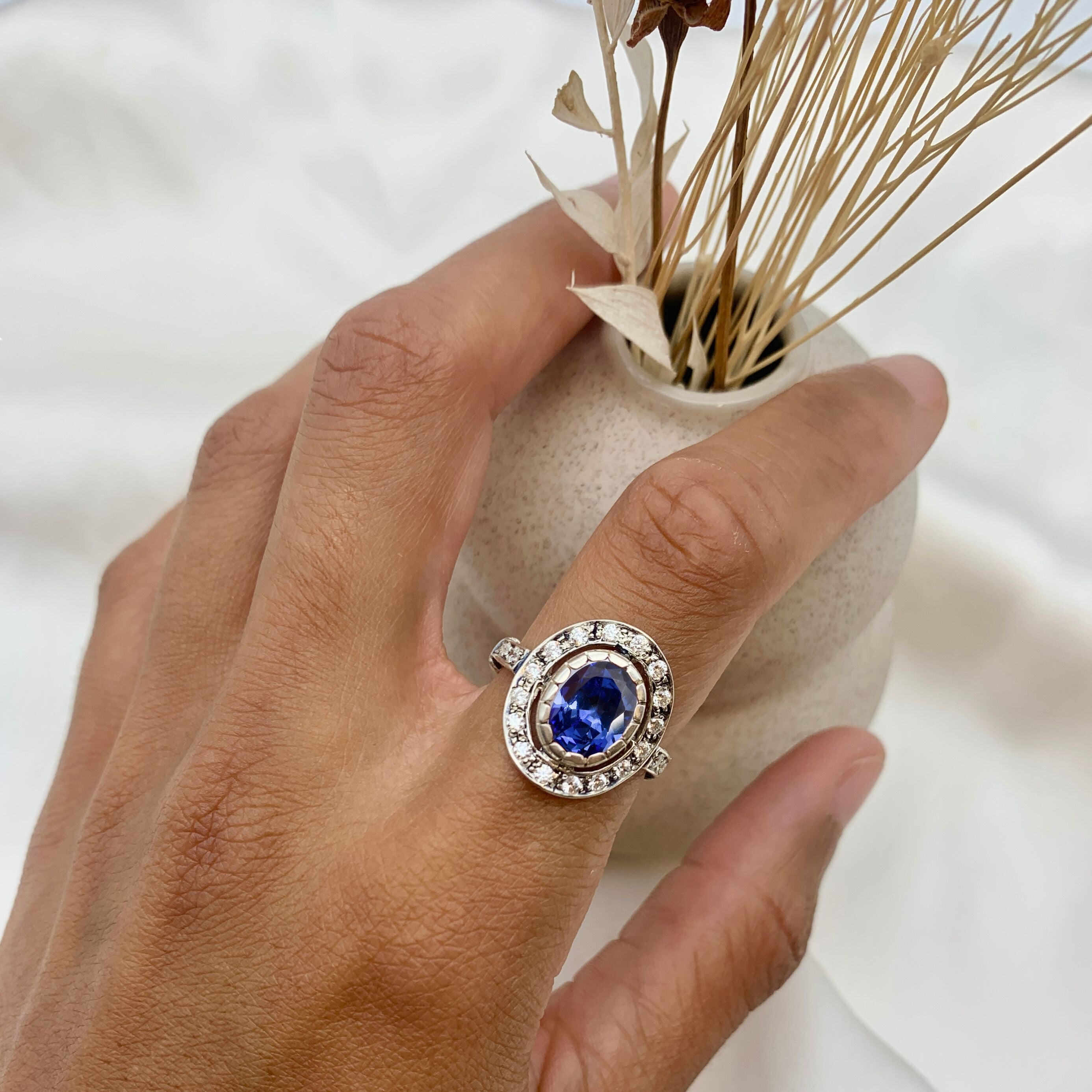Tanzanite Cocktail Ring - Blue Oval Ring - Vintage Halo Ring