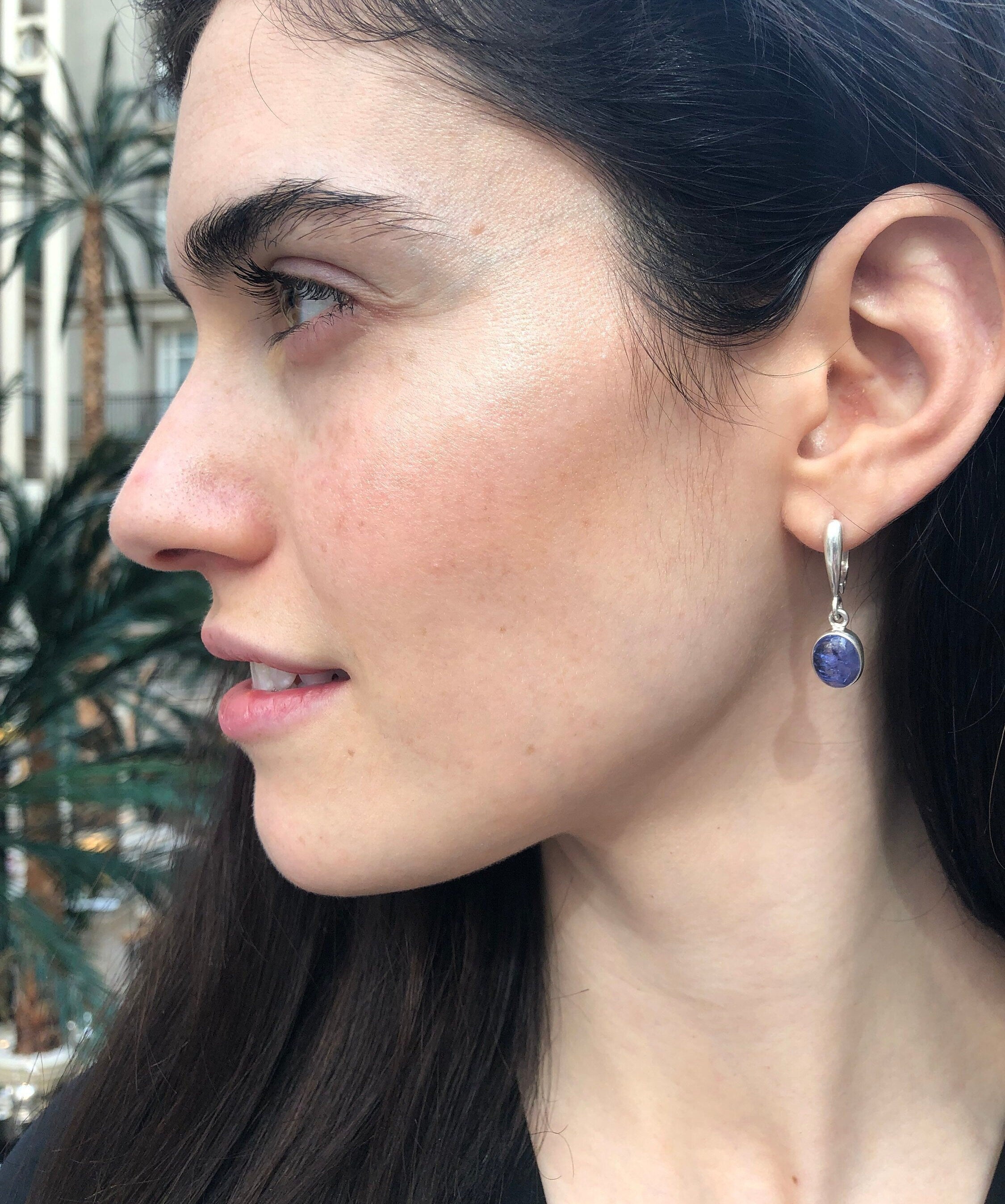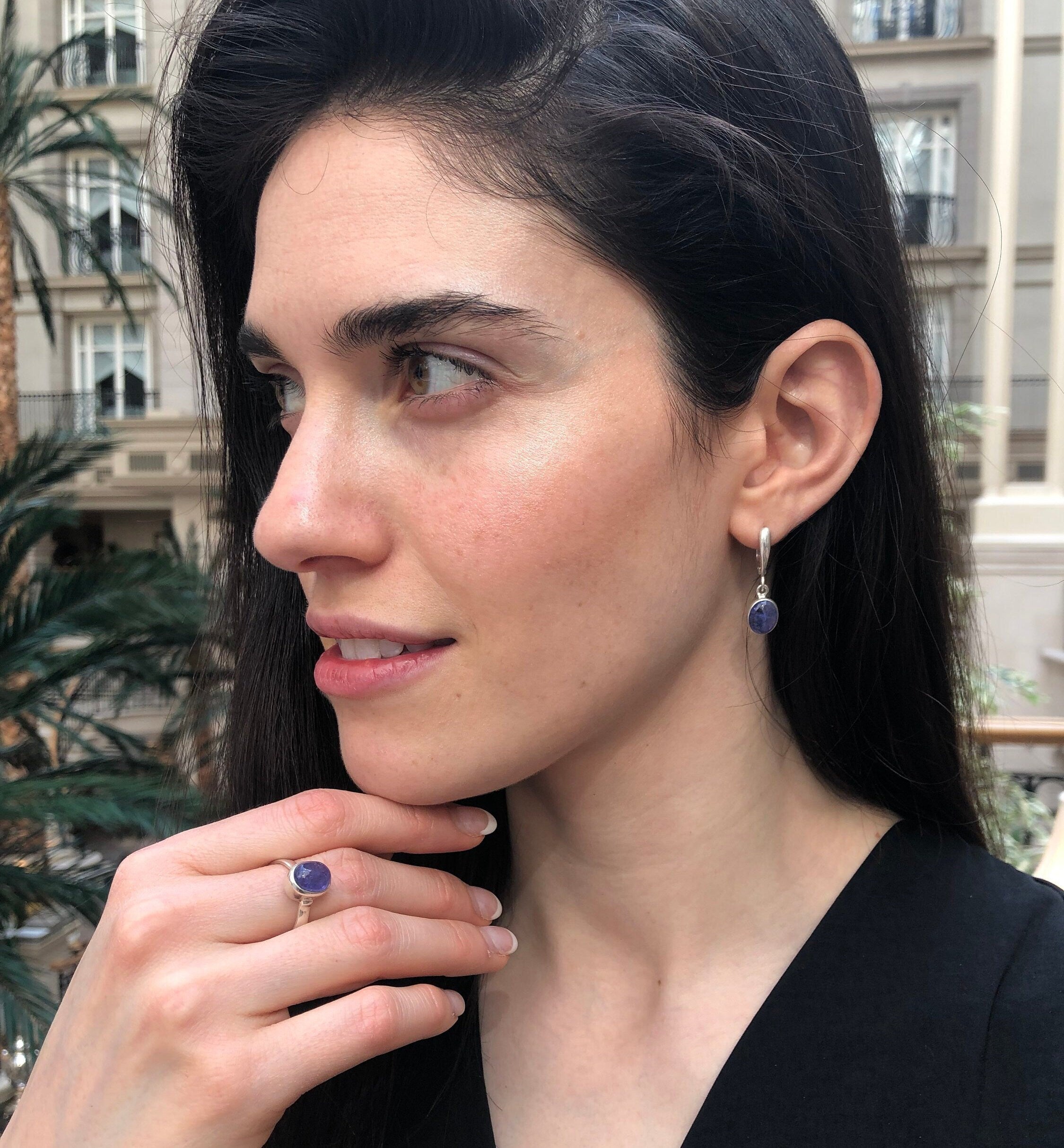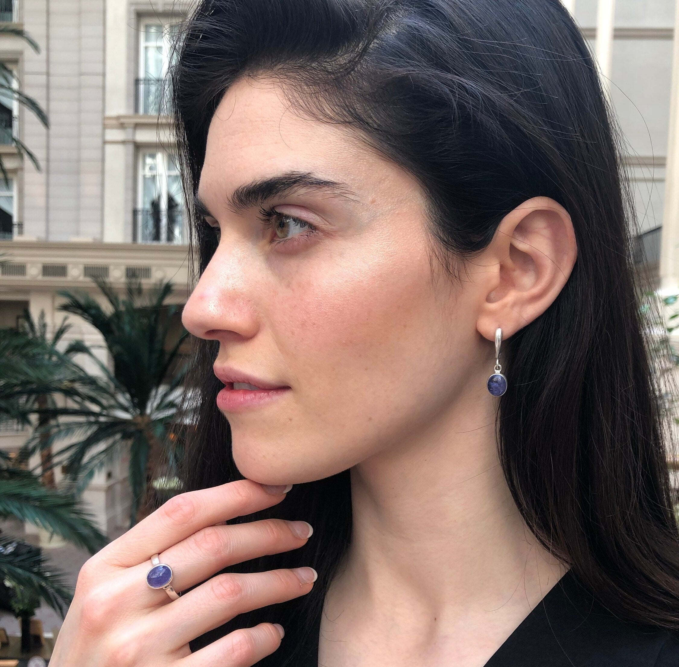 Blue Dangling Earrings - Natural Tanzanite Earrings - Vintage Oval Earrings