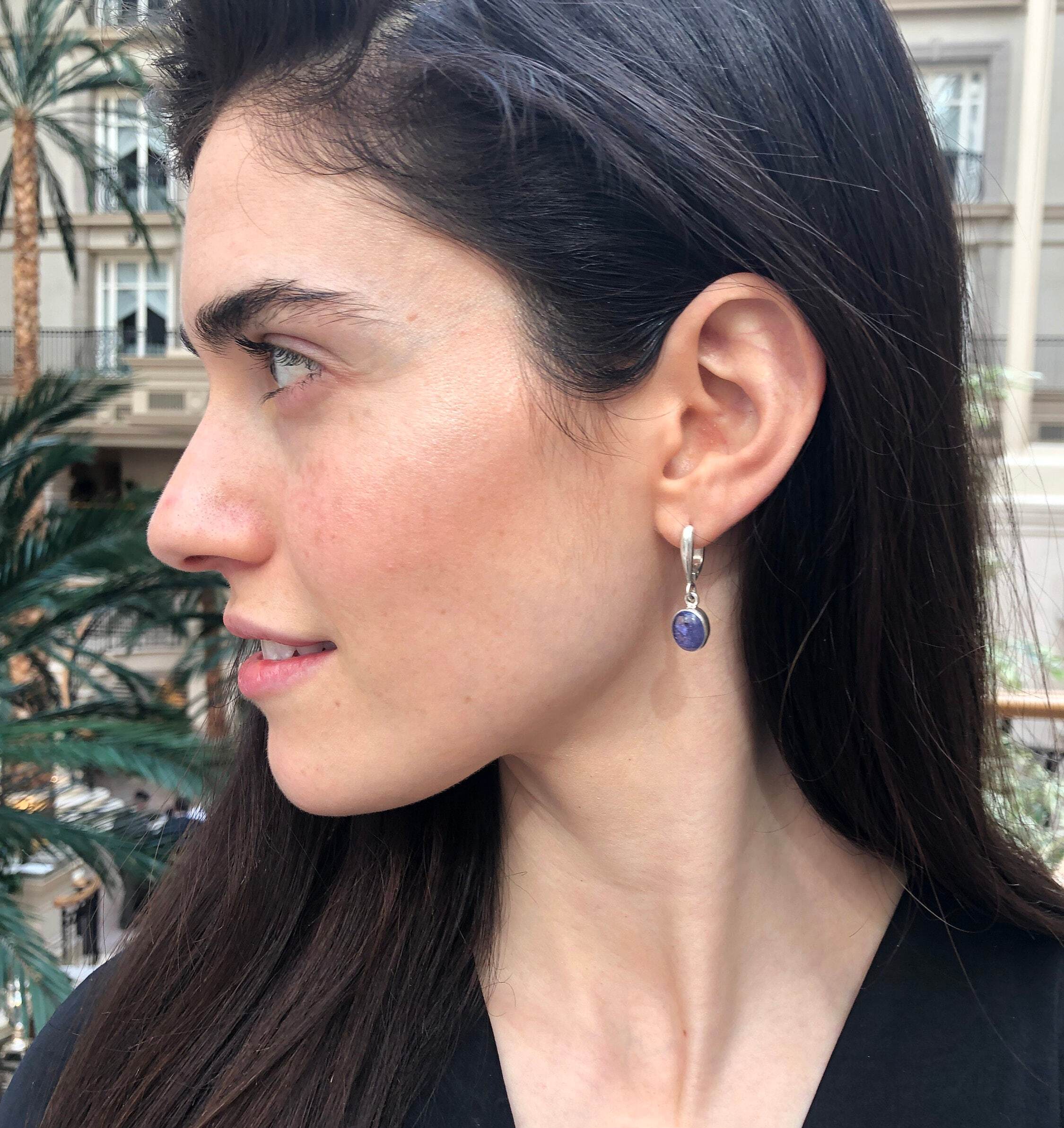 Blue Dangling Earrings set with a Natural Tanzanite in a top grade, natural inclusions & stunning blue color, at 10x8mm each (6 Cts a pair) from Tanzania.