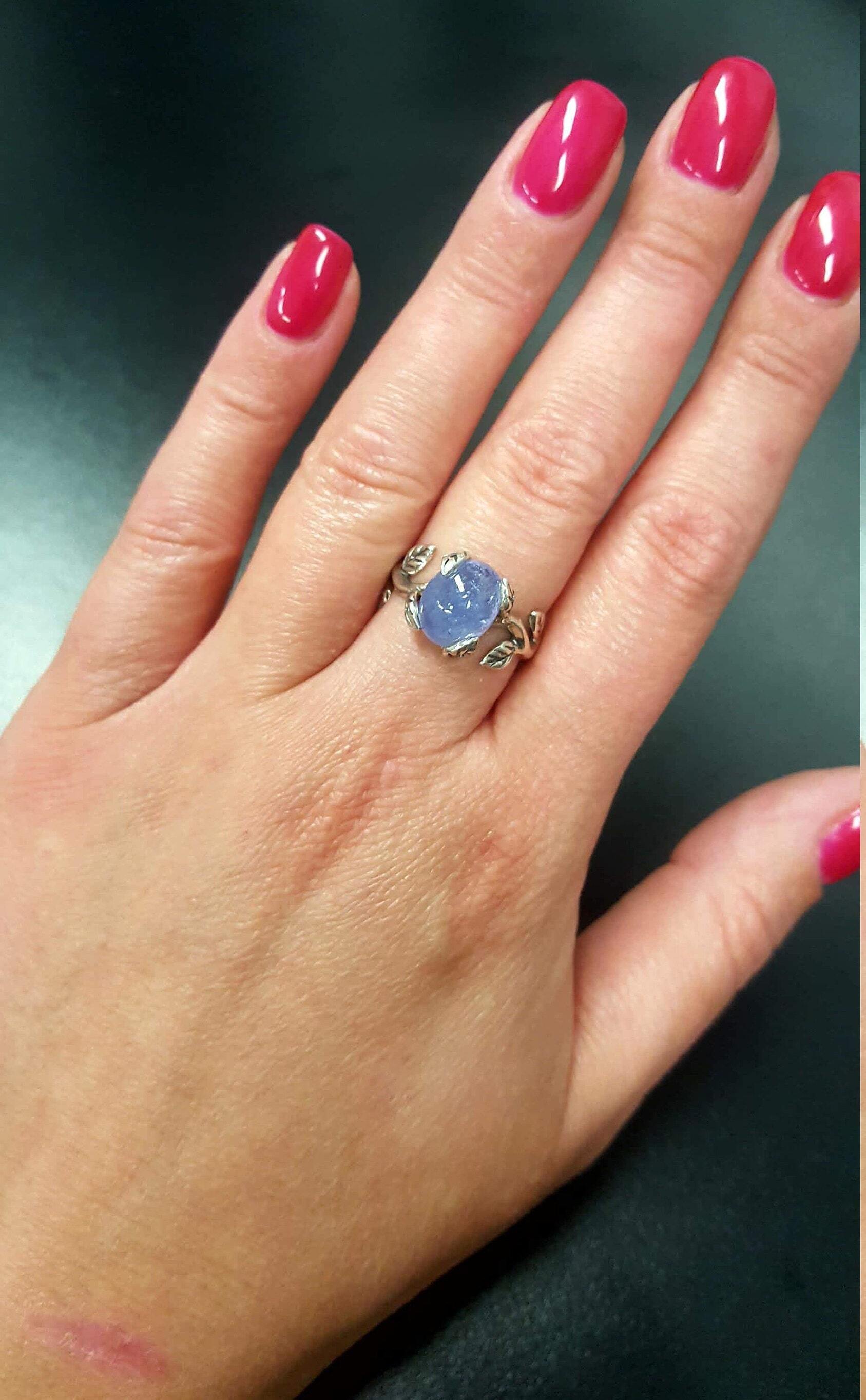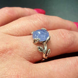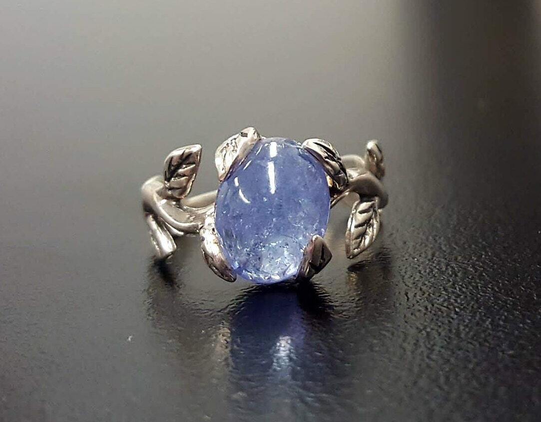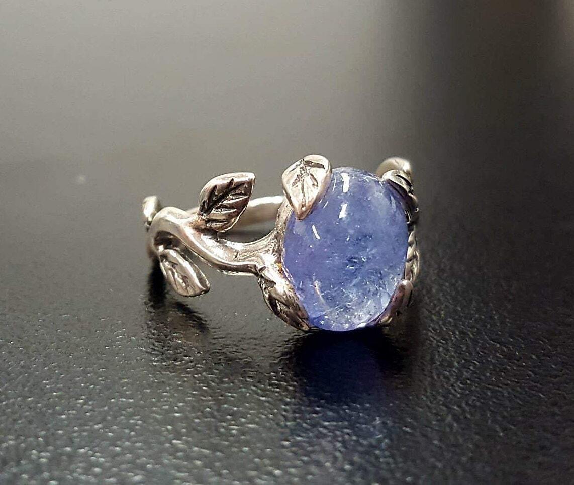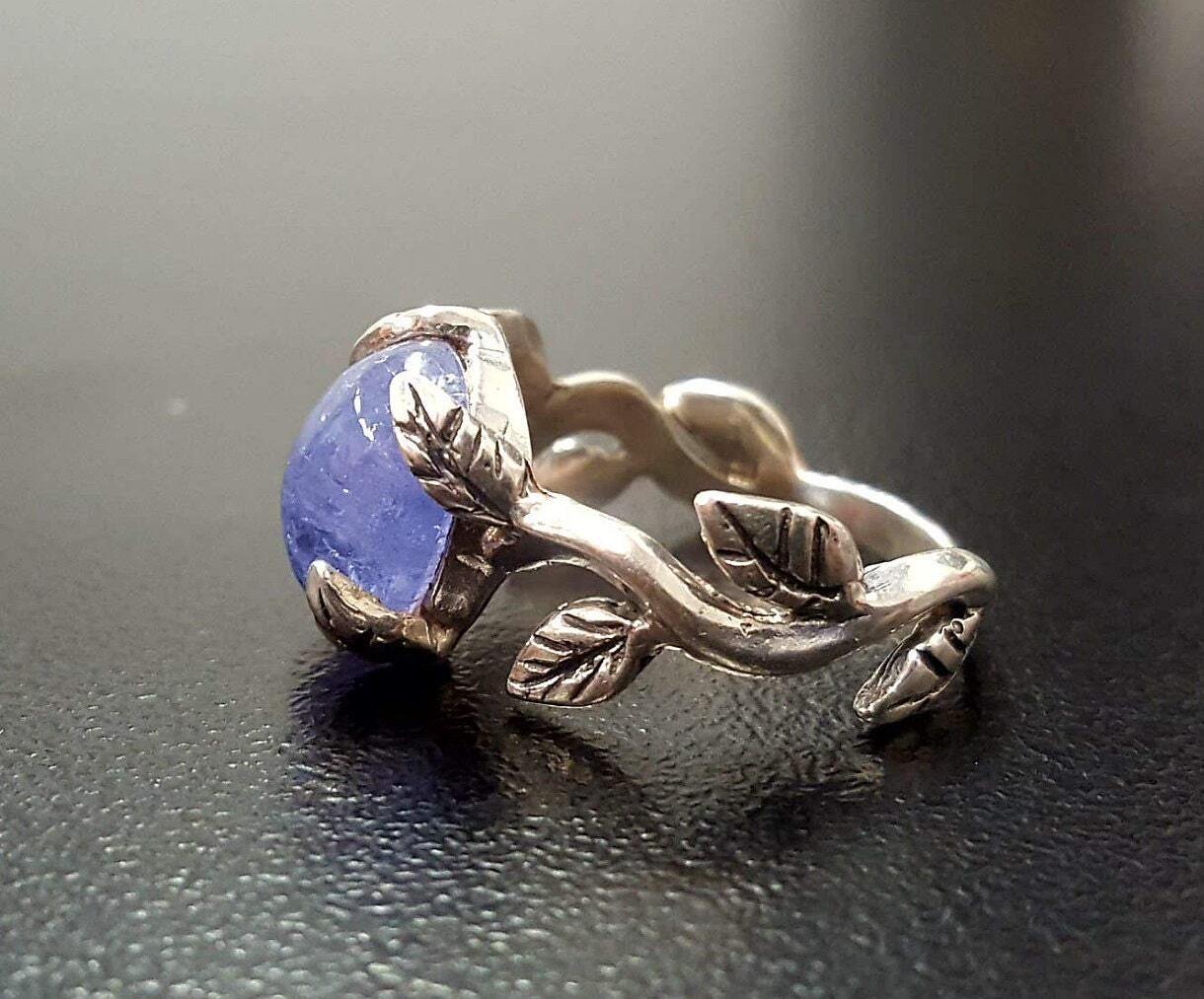 Tanzanite Ring, Natural Tanzanite, December Birthstone, Silver Leaf Ring, Blue Flower Ring, Dainty Ring, Blue Vintage Ring, 925 Silver Ring(1)
