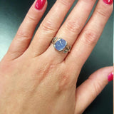 Tanzanite Ring set with a Natural Tanzanite in a top grade, natural inclusions & stunning blue color, at 10x8mm (3 Cts) from Tanzania.