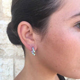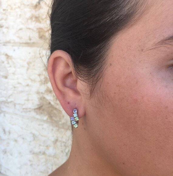 Multistone Earrings set with Natural Peridot, Amethyst & Blue Topaz all in a perfect Diamond Cut, flawless clarity & natural colors, at 3mm each (1.3 Cts a pair).