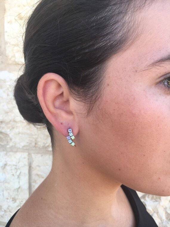 Multistone Earrings - Amethyst Earrings - Peridot Earrings