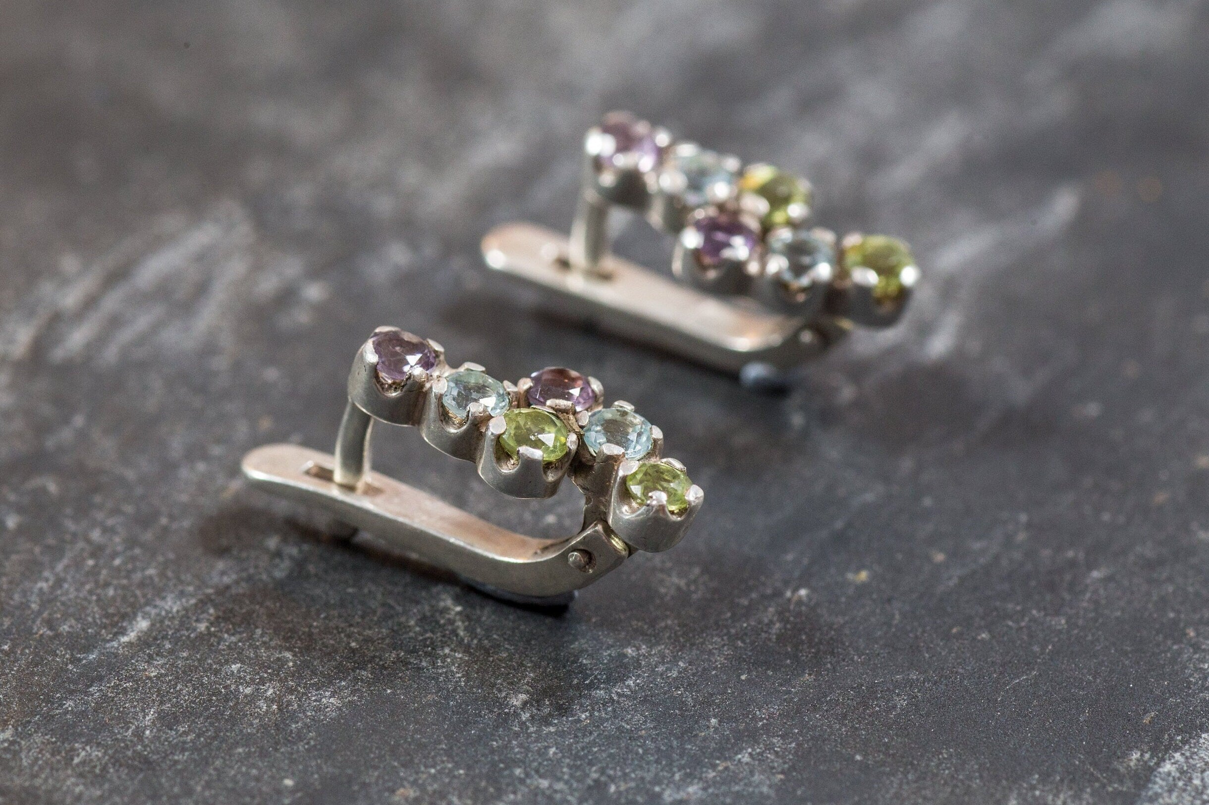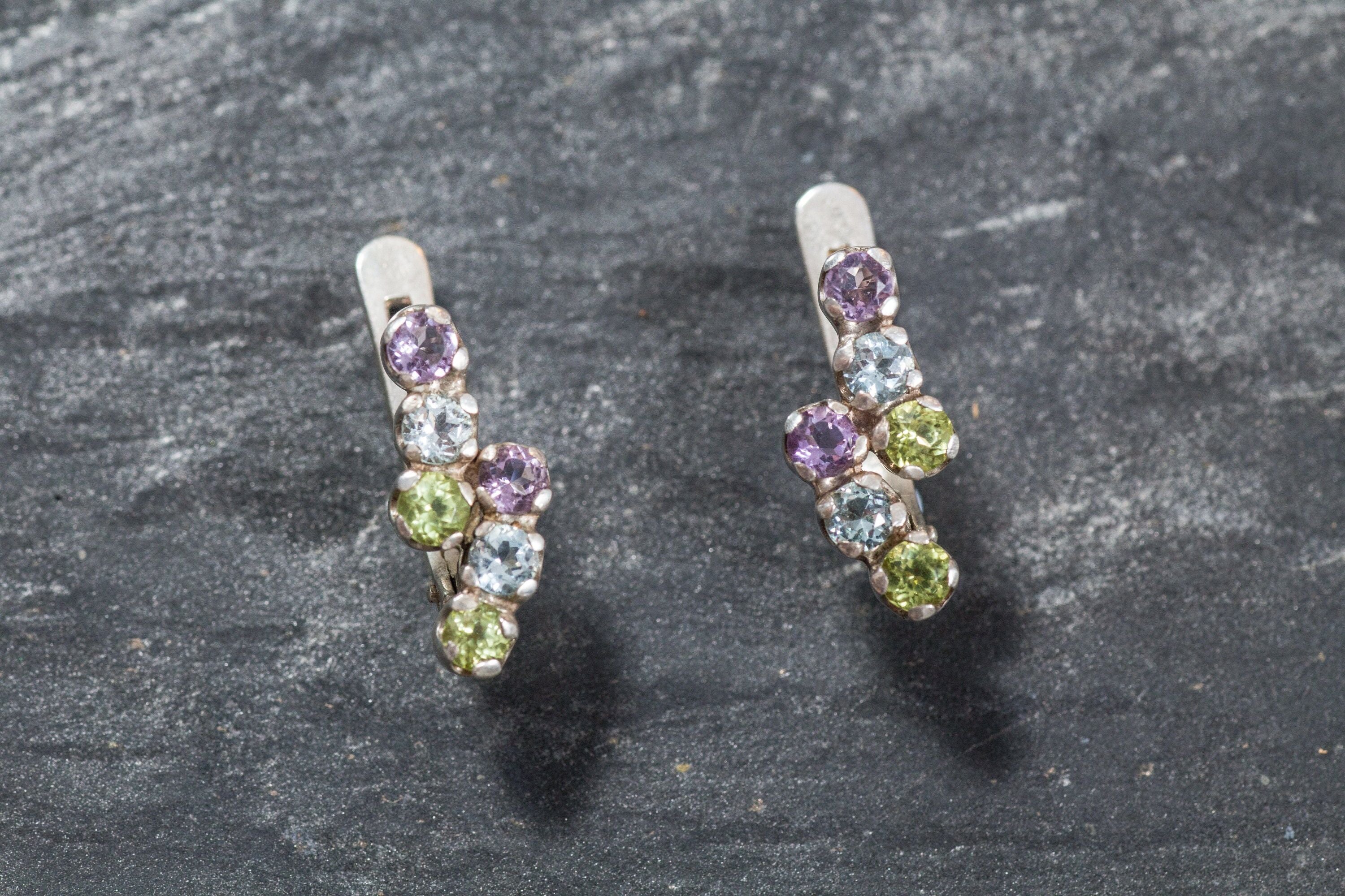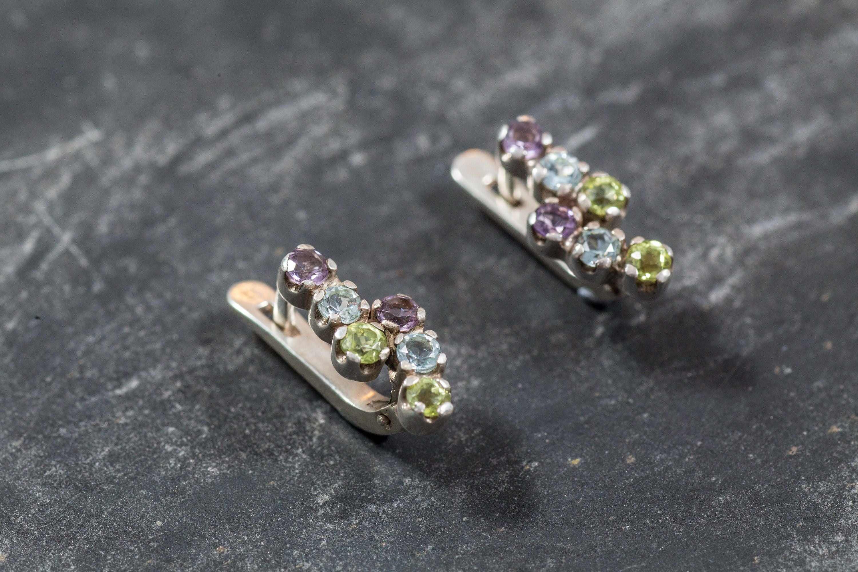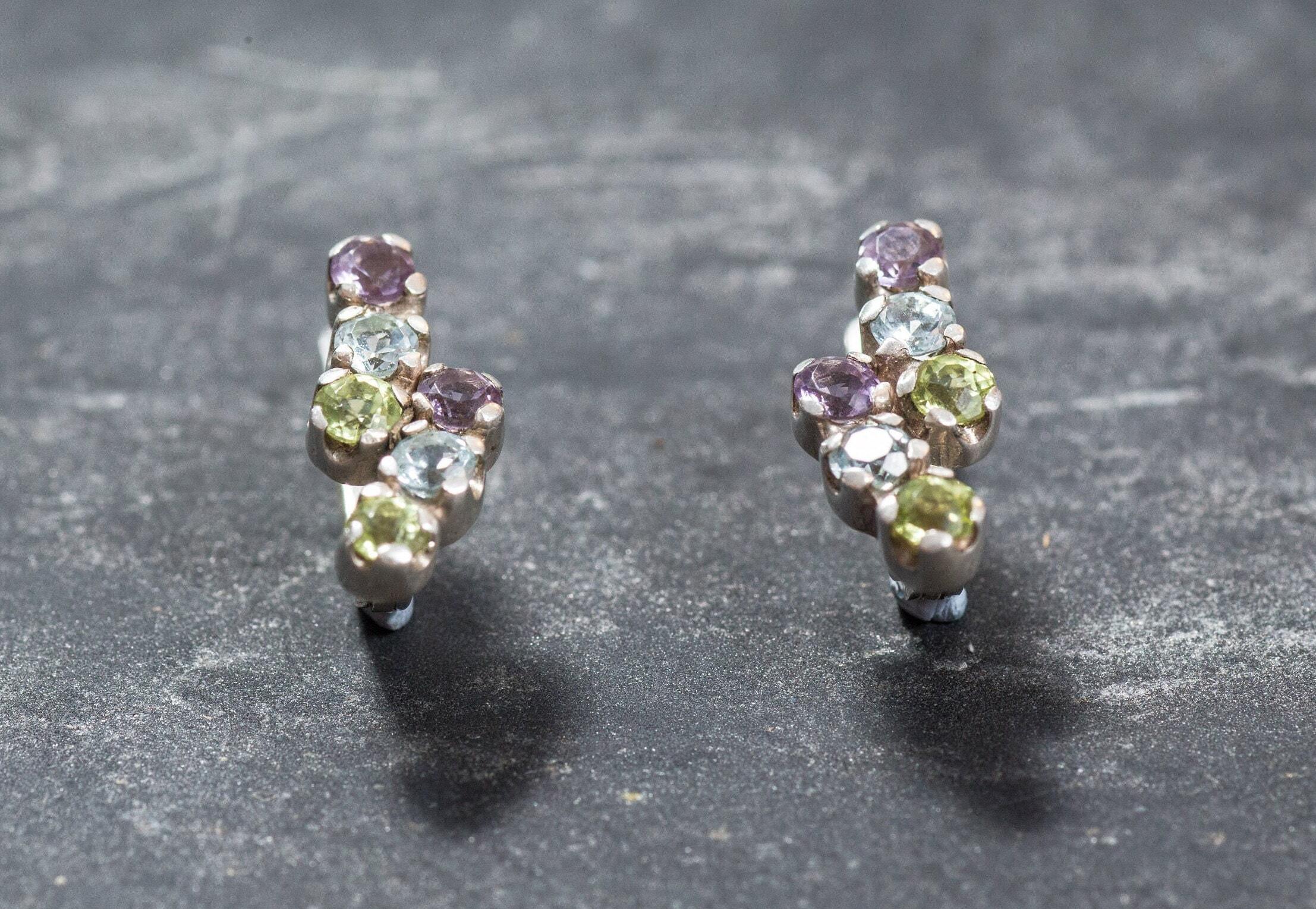 Topaz Earrings, Peridot Earrings, Amethyst Earrings, Blue Topaz Earrings, Unique Earrings, Birthstone Earrings, Solid Silver Earrings, Topaz