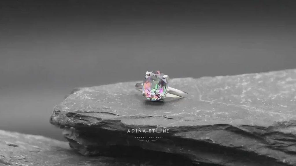 Topaz Ring, Mystic Topaz Ring, Natural Mystic Topaz, Solitaire Ring, December Birthstone, Vintage Ring, Purple Diamond Ring, 925 Silver Ring