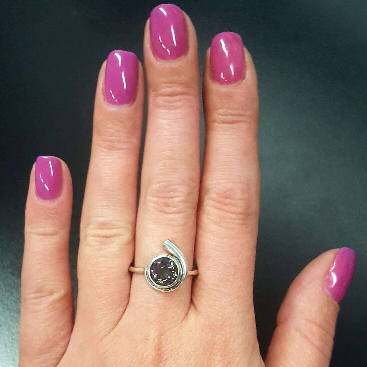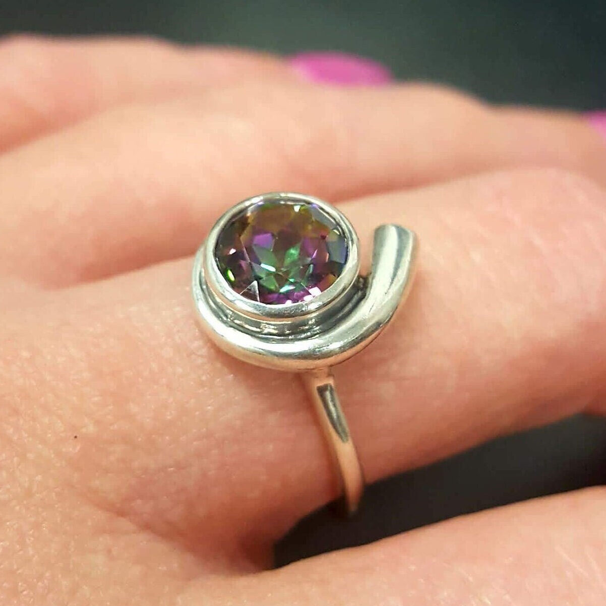 Topaz Ring, Mystic Topaz Ring, Natural Mystic Topaz, December Ring, Silver Round Ring, Purple Diamond Ring, Vintage Ring, Solid Silver Ring