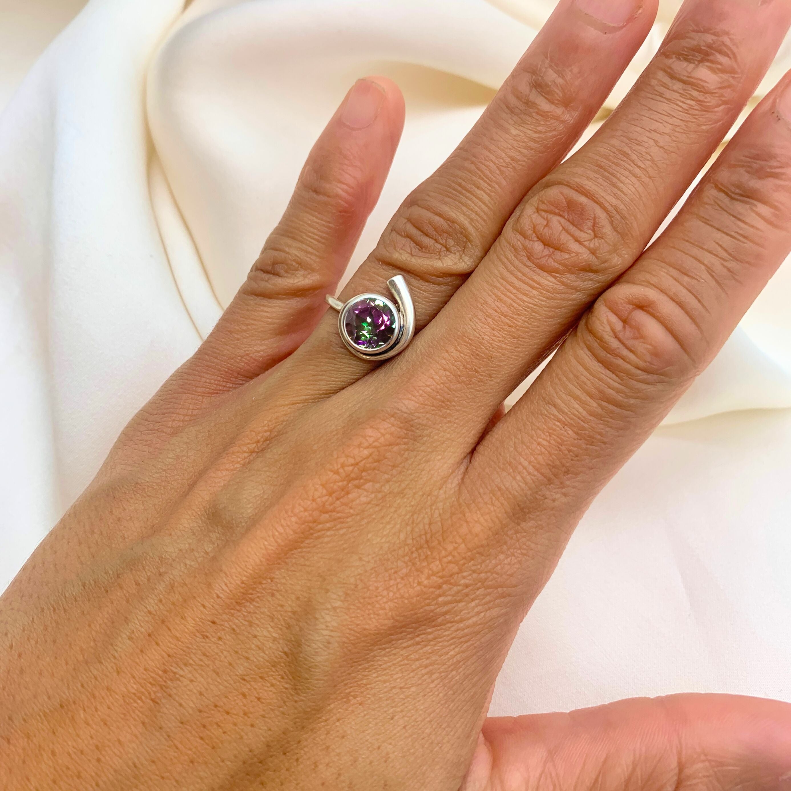 Mystic Topaz Ring set with a Natural Mystic Topaz in a flawless cut, clarity & purple/green interchanging color, at 8mm (2 Cts) from Brazil. Solid 925 Sterling Silver ☞ made to last.