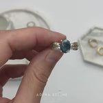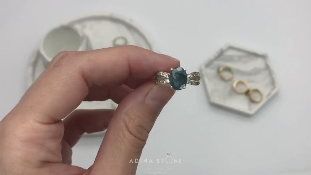 Blue Tourmaline Ring - Split Pave Band - Blue Vintage Ring