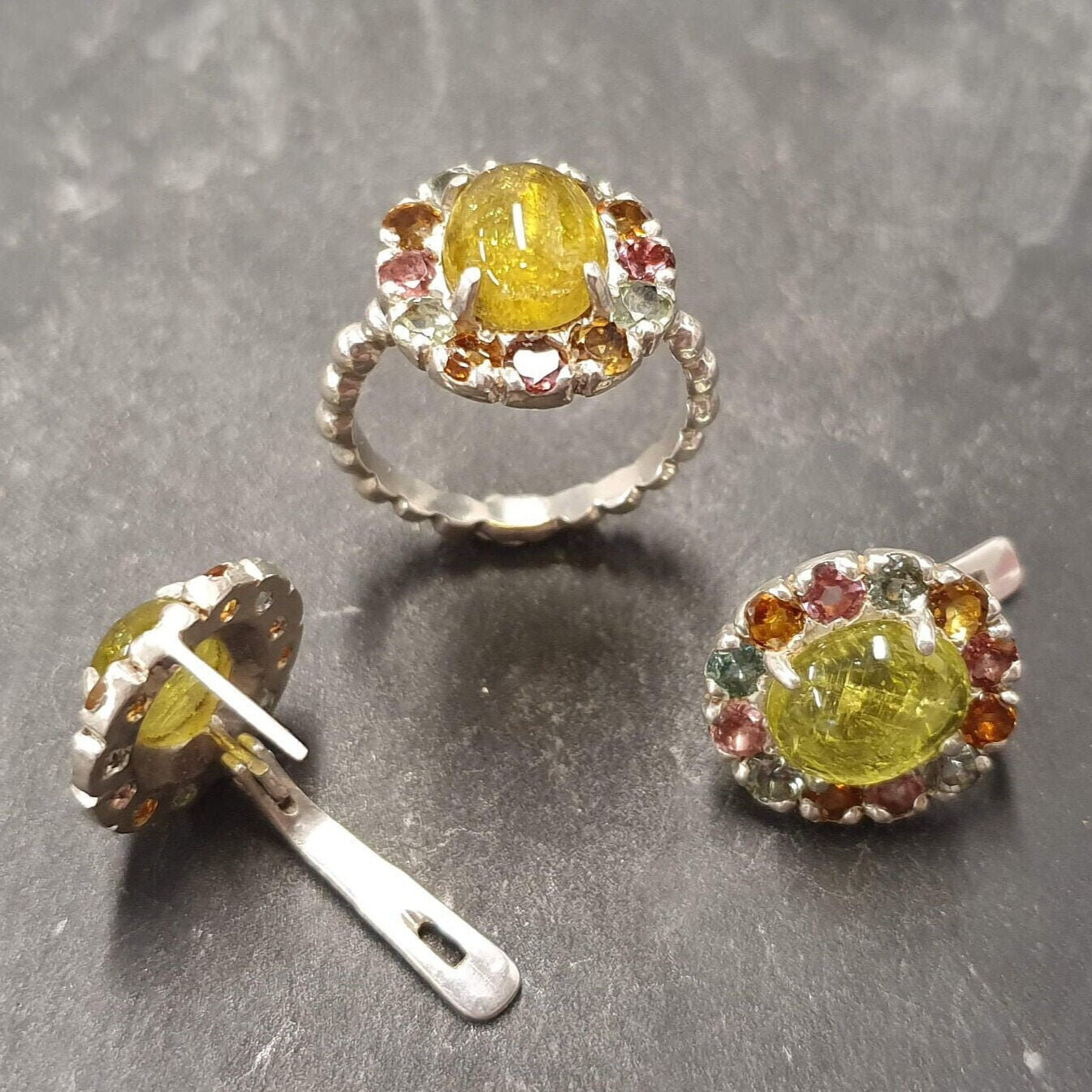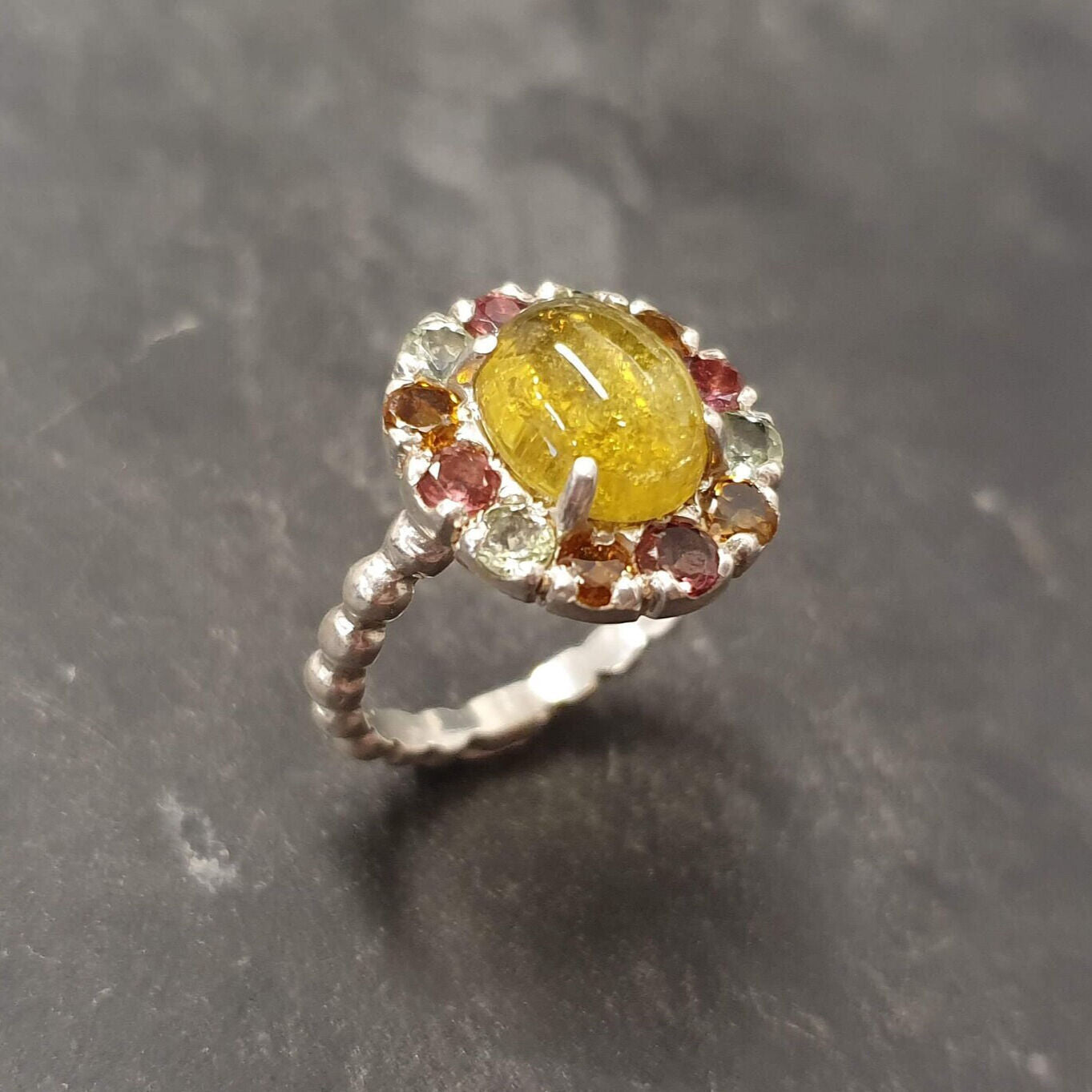 Tourmaline Ring, Natural Tourmaline, October Birthstone, Victorian Ring, Yellow Tourmaline Ring, Vintage Ring, Yellow Ring, 925 Silver Ring