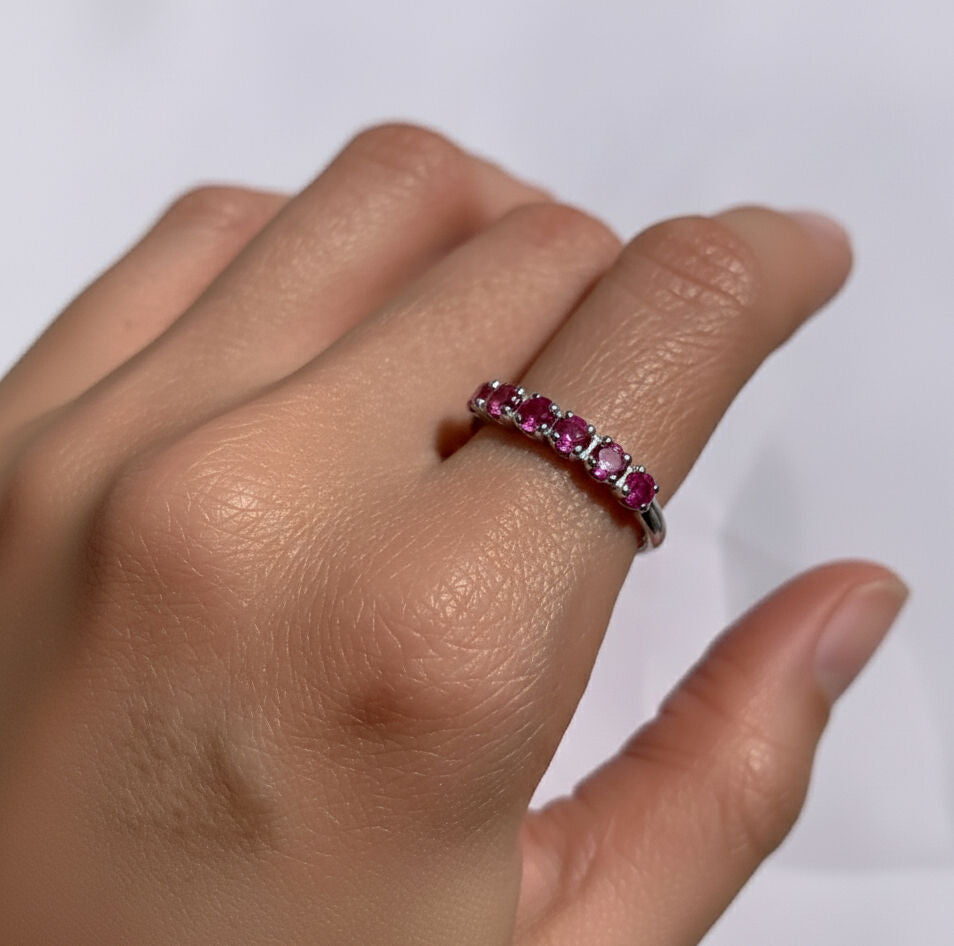 Pink Tourmaline Ring - Pink Eternity Band - Dainty Tourmaline Ring made in 925 Sterling Silver. Ideal for everyday wear and perfect for birthday gifting and special occasions.
