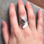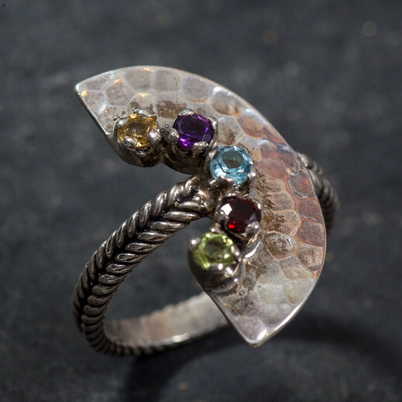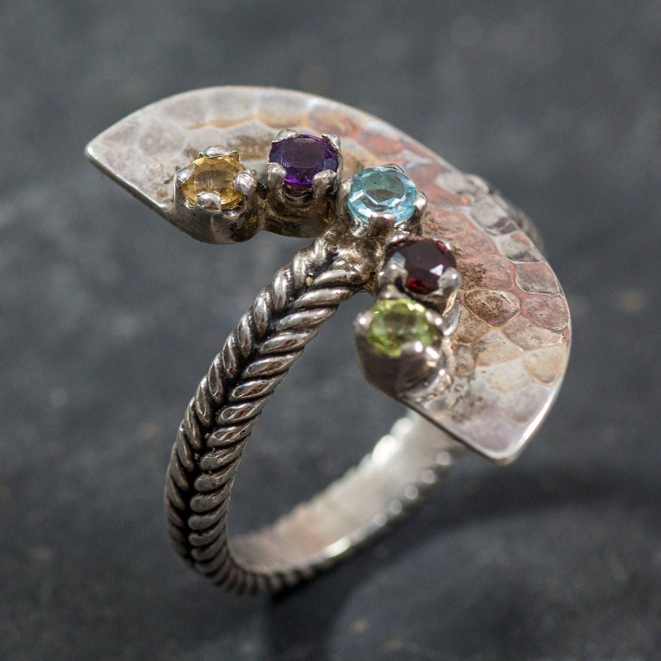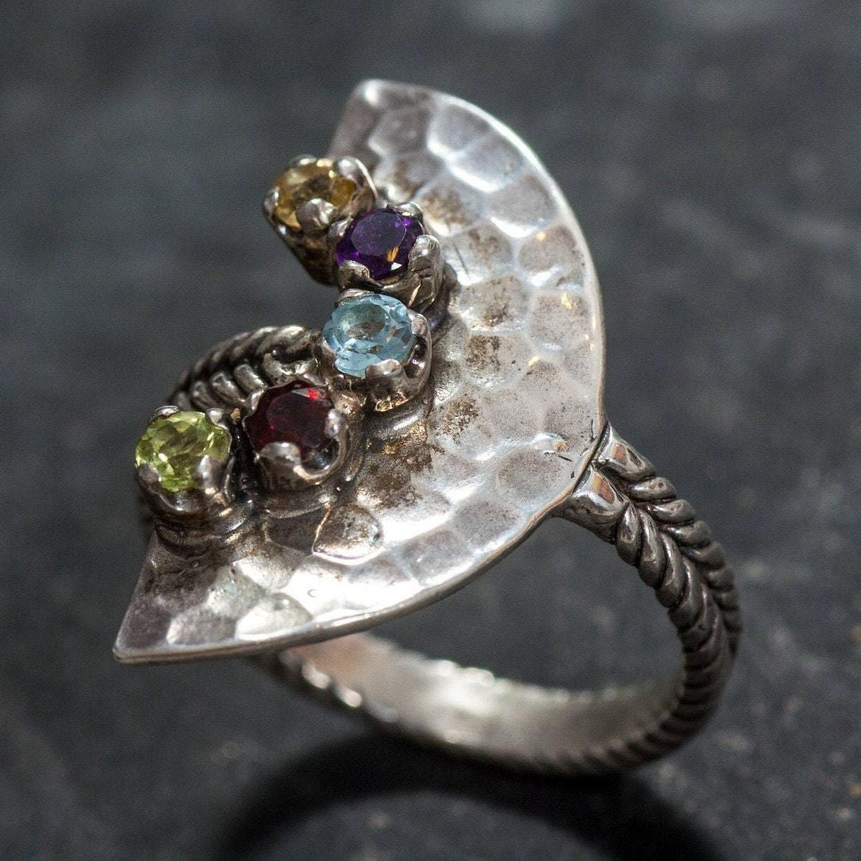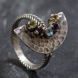 Tribal Ring, Citrine, Amethyst, Blue Topaz, Garnet, Peridot, Half Moon Ring, Birthstone Ring, Solid Silver Ring, Unique Ring, Natural Stones