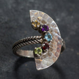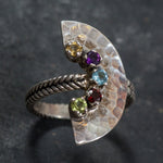 Multistone Half Moon Ring - Vintage Tribal Ring - Fan Statement Ring