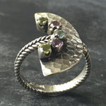 Colorful Multistone Ring - Amethyst Boho Ring - Silver Fan Ring